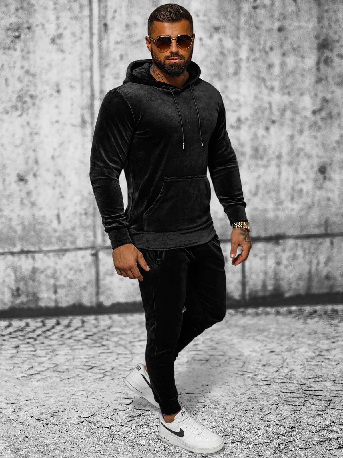 Komplet dresowy męski welurowy czarny OZONEE JS/8C1171/3 - wygoda i styl w jednym