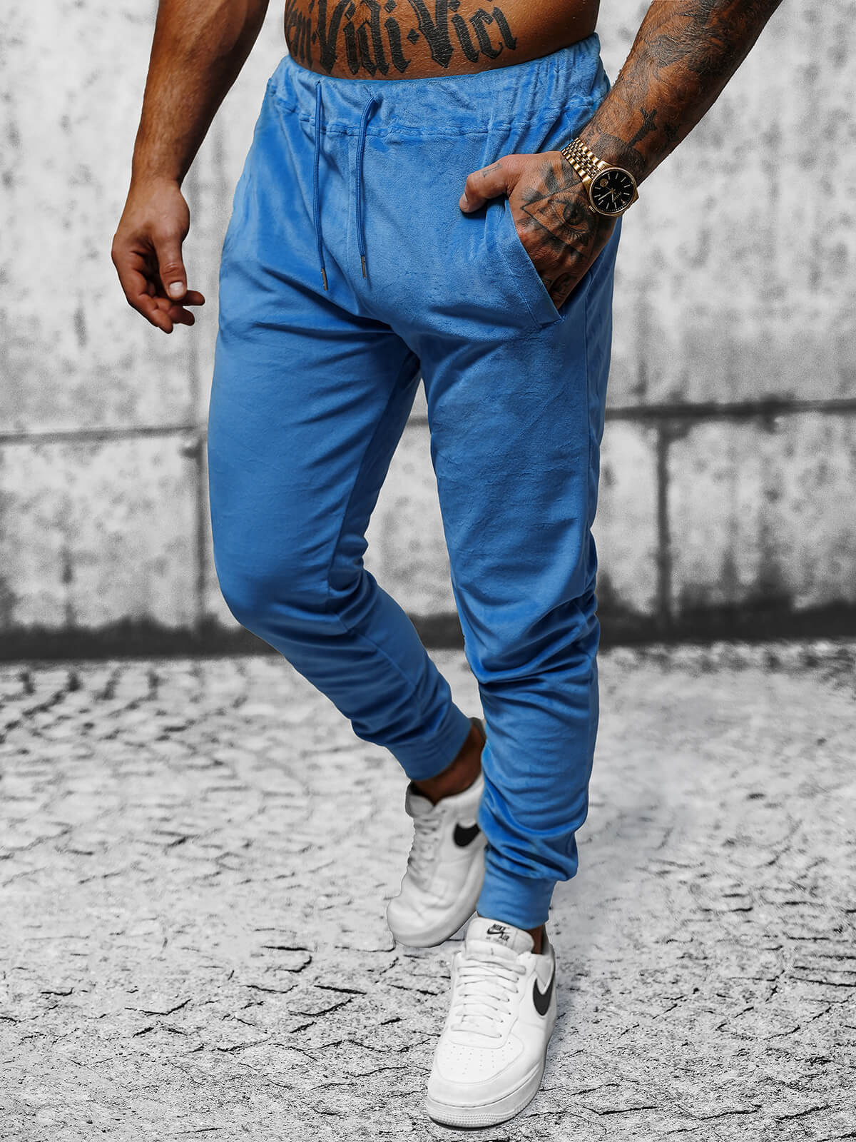 Spodnie dresowe męskie welurowe niebieskie OZONEE JS/8K1172/17 - komfort i styl w jednym