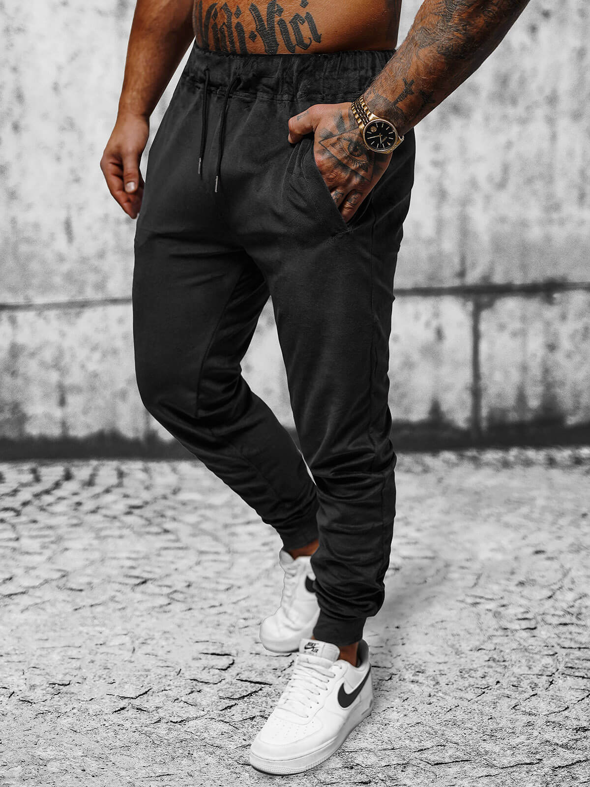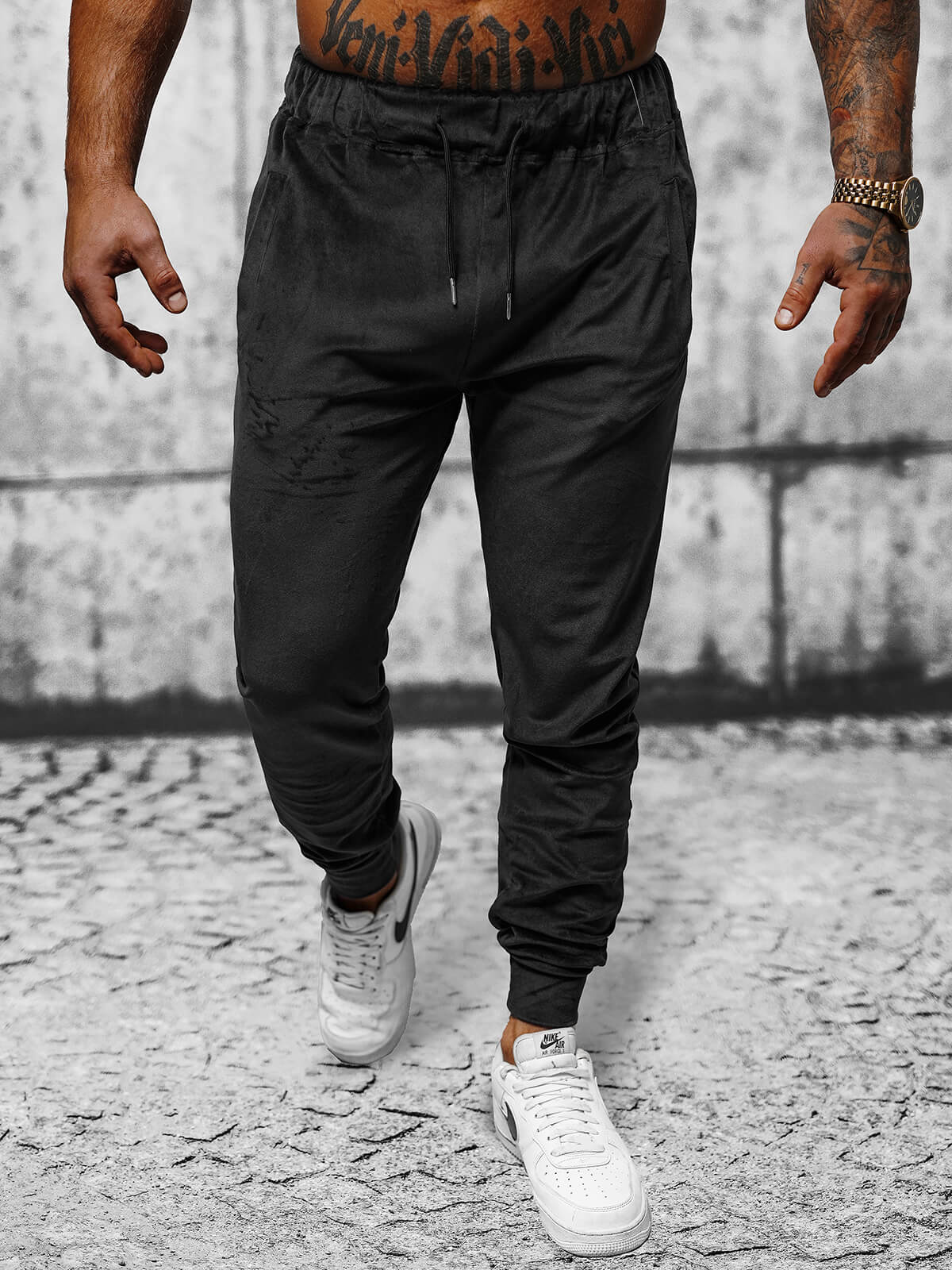 Spodnie dresowe męskie welurowe czarne OZONEE JS/8K1172/3 - komfort i styl w jednym