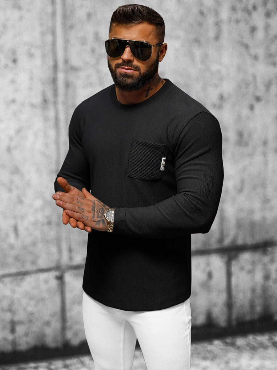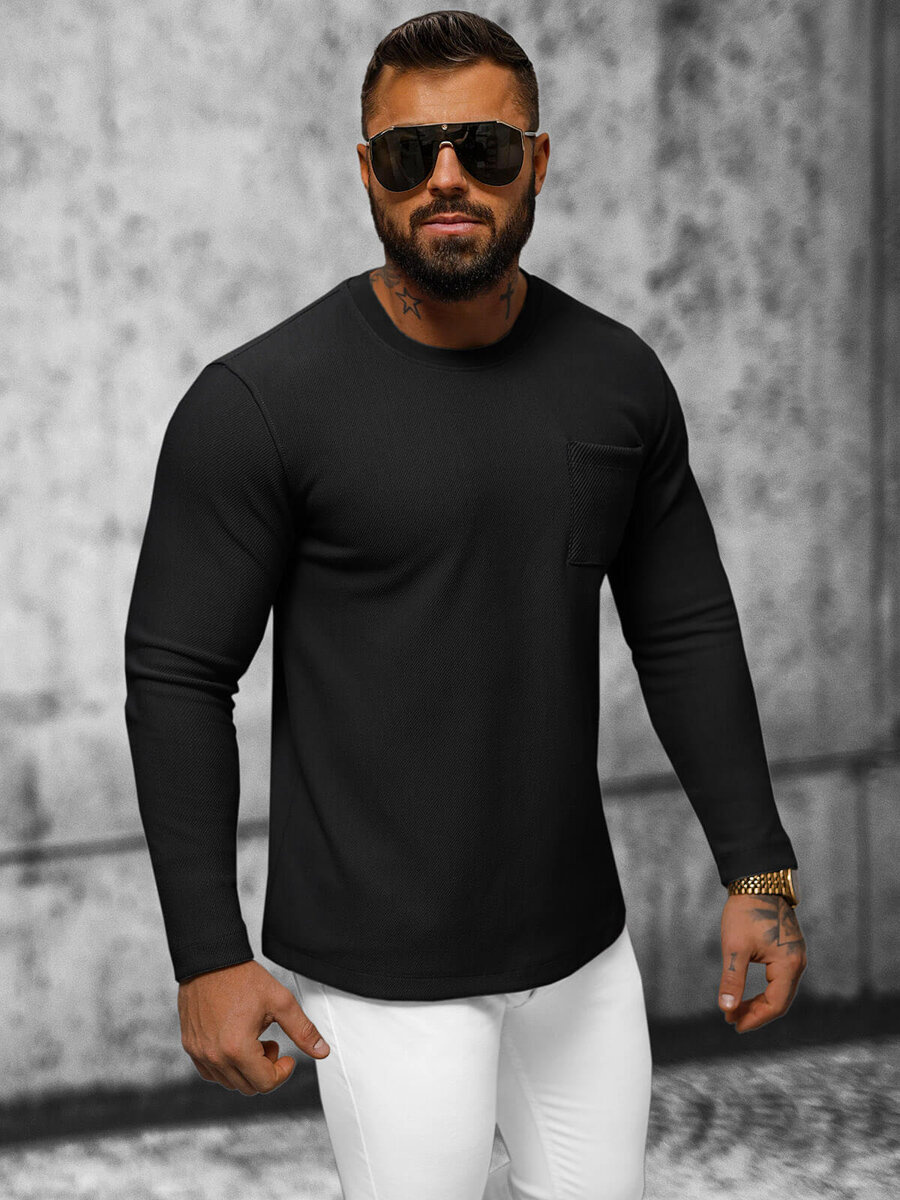 Bluza męska czarna OZONEE O/TB2232 to idealny wybór na co dzień, do pracy, na trening czy na spotkanie ze znajomymi. Doskonale sprawdzi się w połączeniu z jeansami, spodniami chinos czy szortami. Można ją nosić zarówno na bluzę, jak i pod kurtkę. To uniwersalny element garderoby, który powinien znaleźć się w szafie każdego mężczyzny.