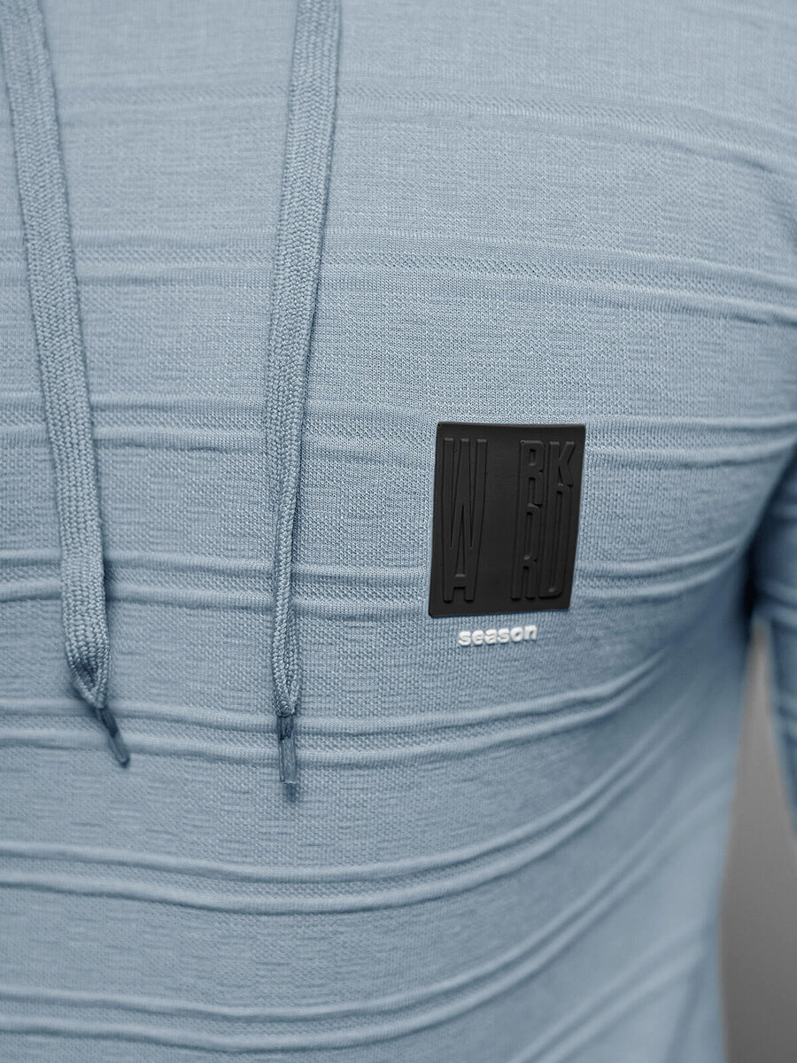 Bluza z kapturem męska niebieska OZONEE O/TB2272 to propozycja dla mężczyzn ceniących sobie modny wygląd i komfort noszenia. Wykonana z najwyższej jakości materiałów, gwarantuje wygodę przez cały dzień. Wyróżnia się modnym wypukłym wzorem, który dodaje jej oryginalności. Posiada praktyczną kieszeń typu kangurka oraz dół i rękawy ze ściągaczem, co podkreśla jej sportowy charakter.
