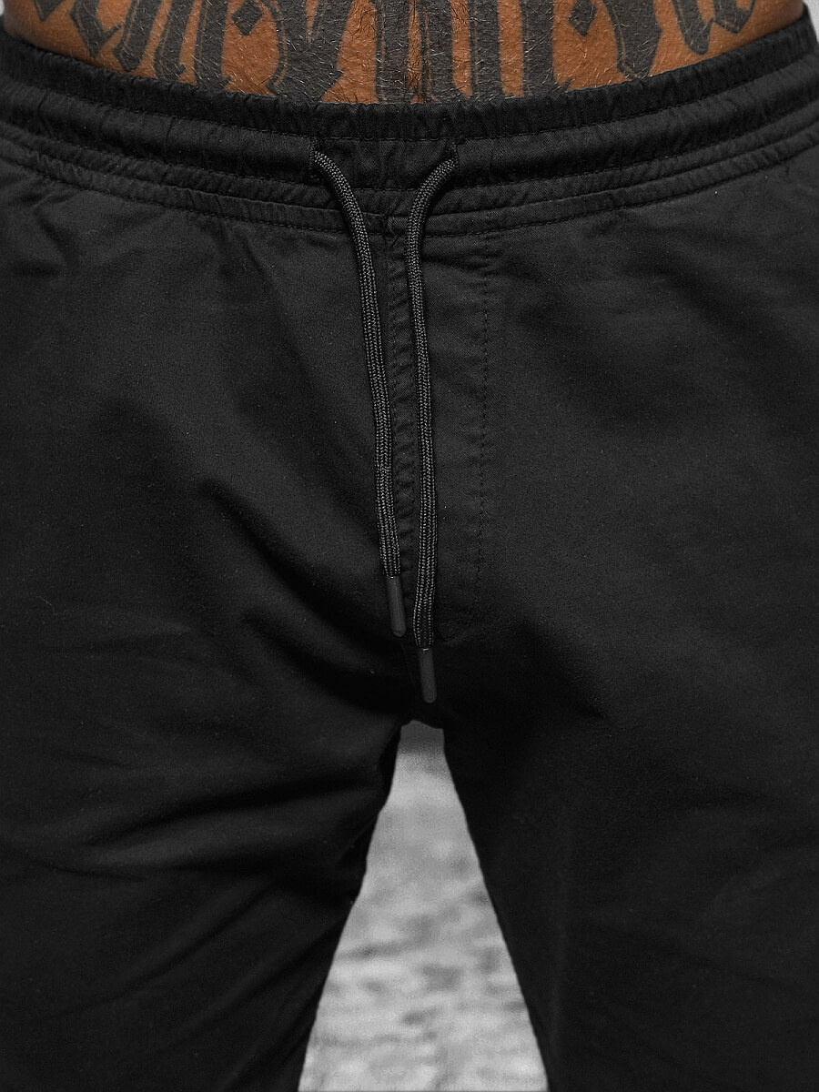 Model na zdjęciu (182 cm, 87 kg) prezentuje produkt w rozmiarze L. Spodnie idealnie sprawdzą się dla mężczyzn ceniących sobie komfort i swobodę ruchów.
