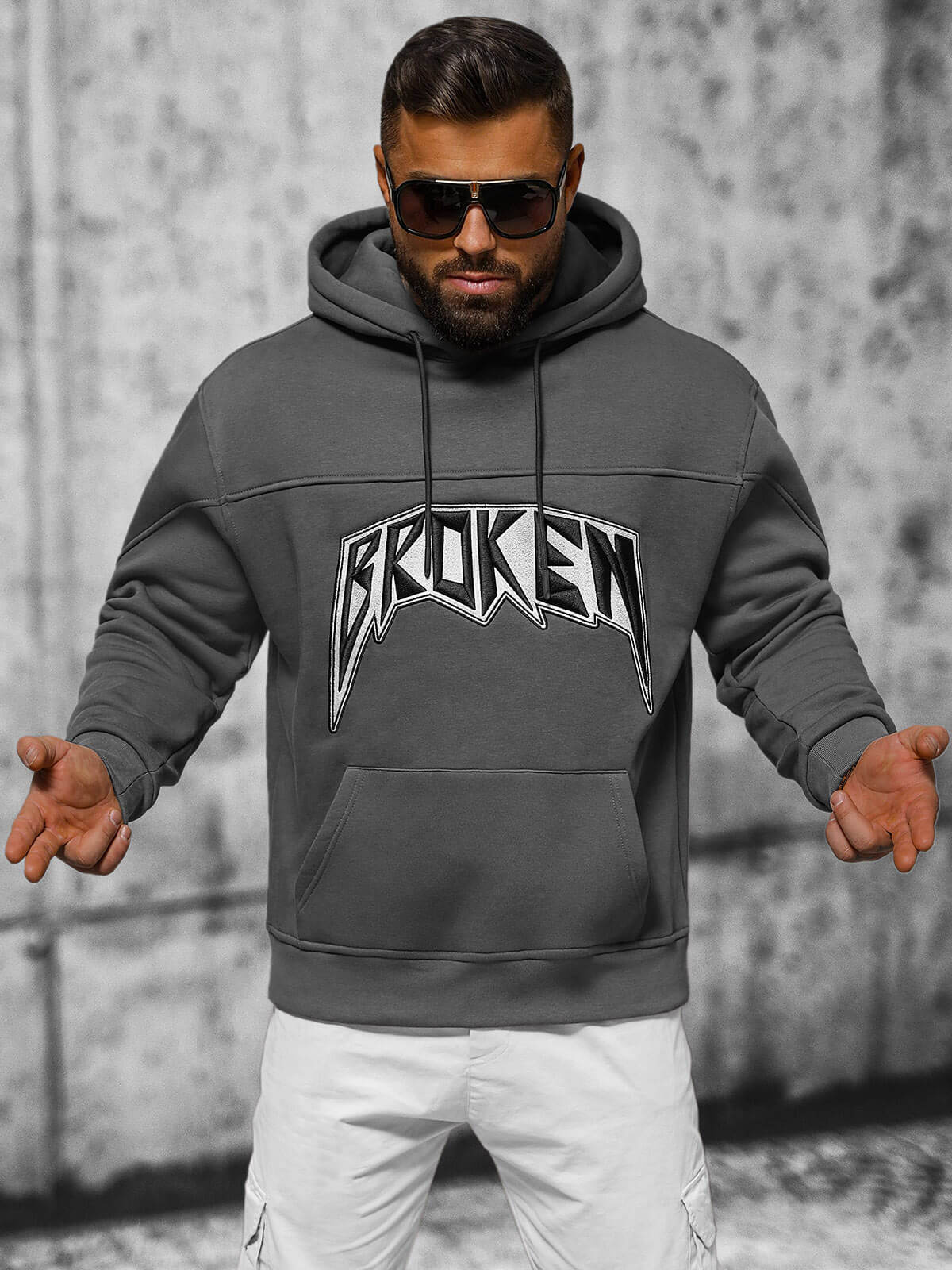 Bluza z kapturem męska grafitowa OZONEE JS/SWE23019 to idealne połączenie stylu i komfortu. Wykonana z najwyższej jakości materiałów, zapewnia wygodę noszenia przez cały dzień. Modny, wyszywany napis dodaje jej niepowtarzalnego charakteru, a kieszeń typu kangurka jest nie tylko praktyczna, ale również podkreśla jej sportowy styl. Dół i rękawy ze ściągaczem gwarantują idealne dopasowanie do sylwetki.