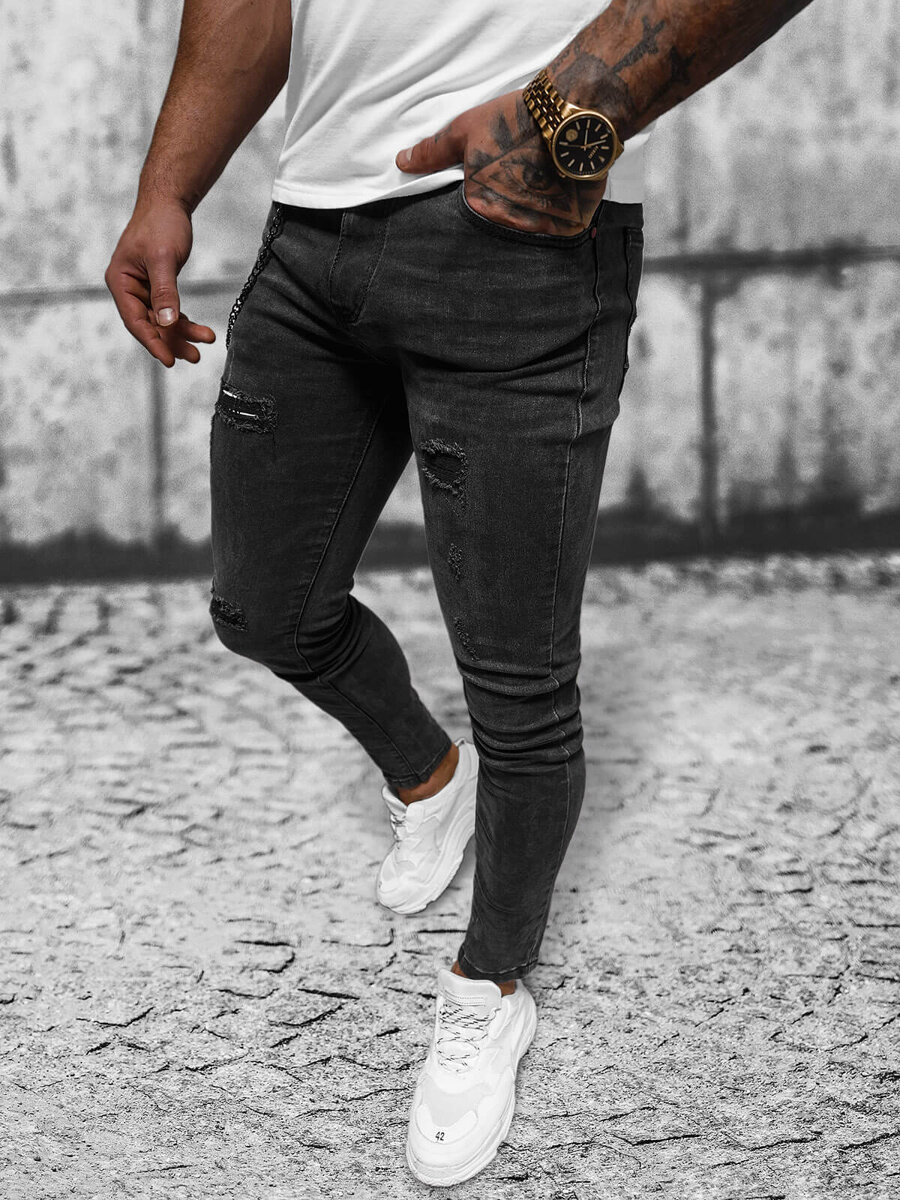 Spodnie jeansowe męskie czarne OZONEE DR/TF218 - wygoda i styl w jednym
