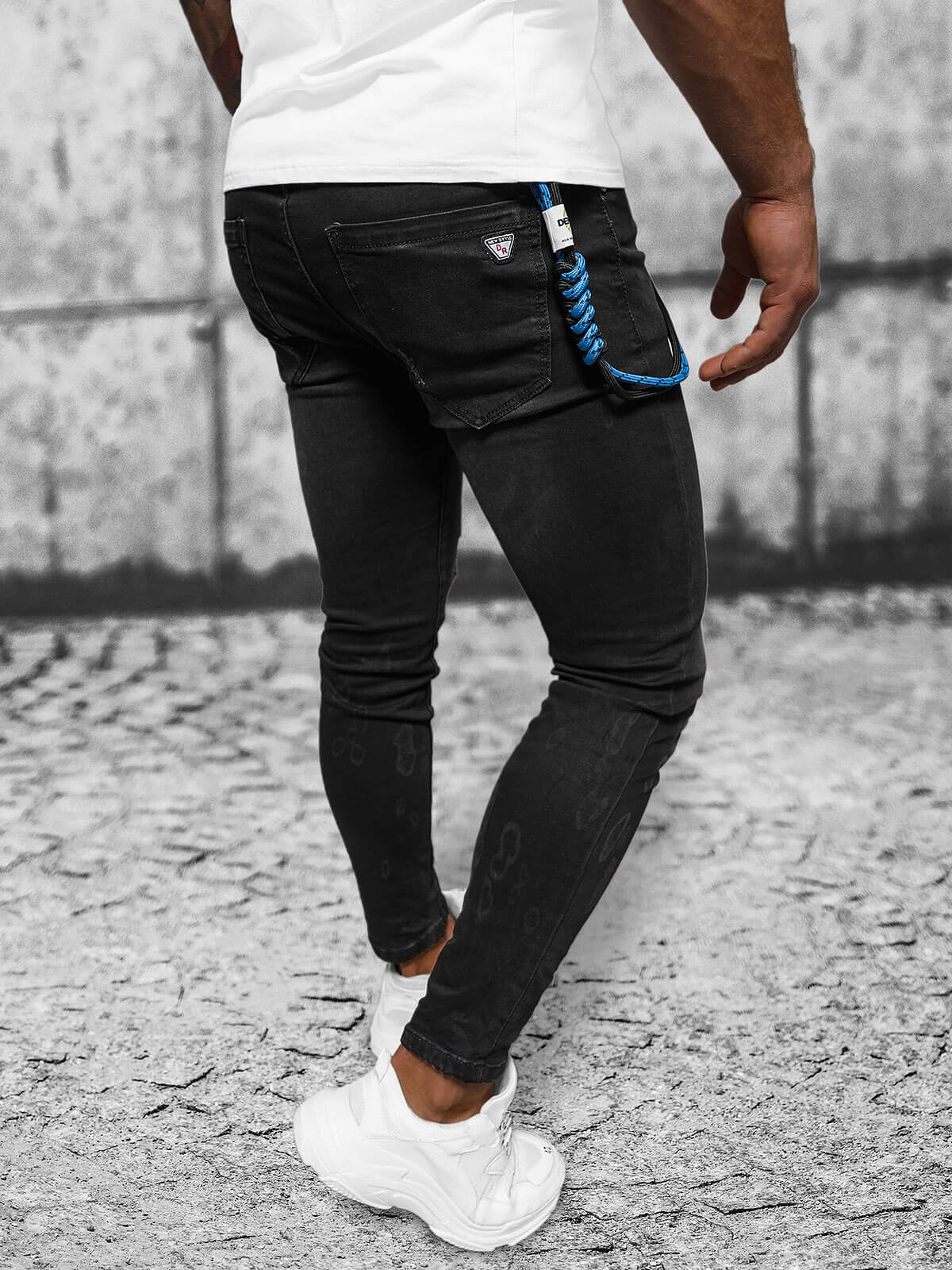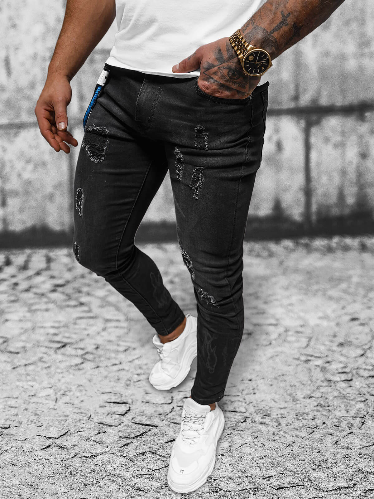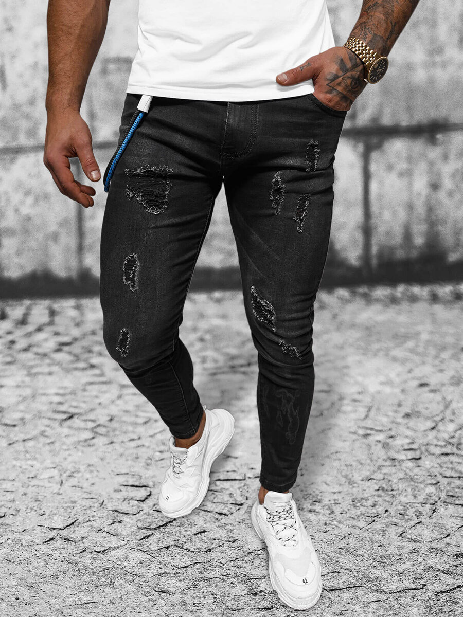Stylowy wybór dla mężczyzn - Spodnie jeansowe męskie czarne OZONEE DR/TF245