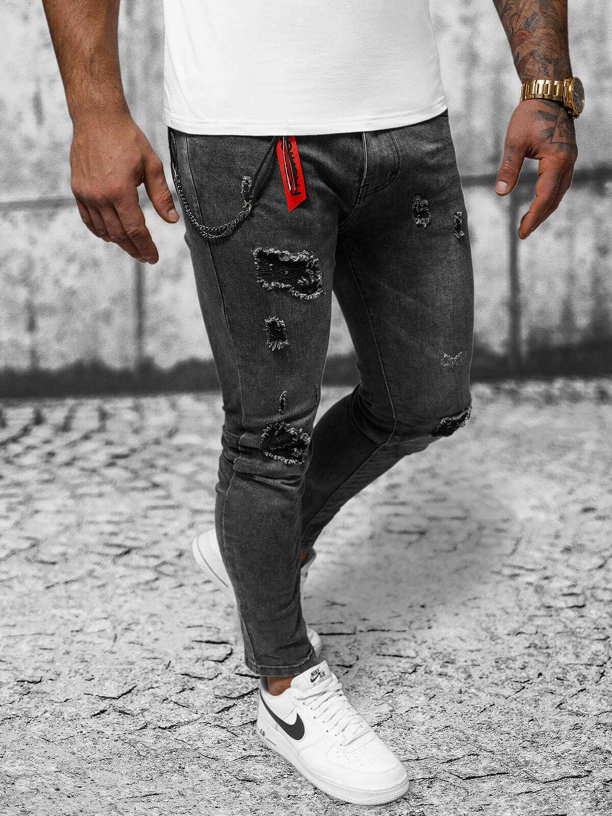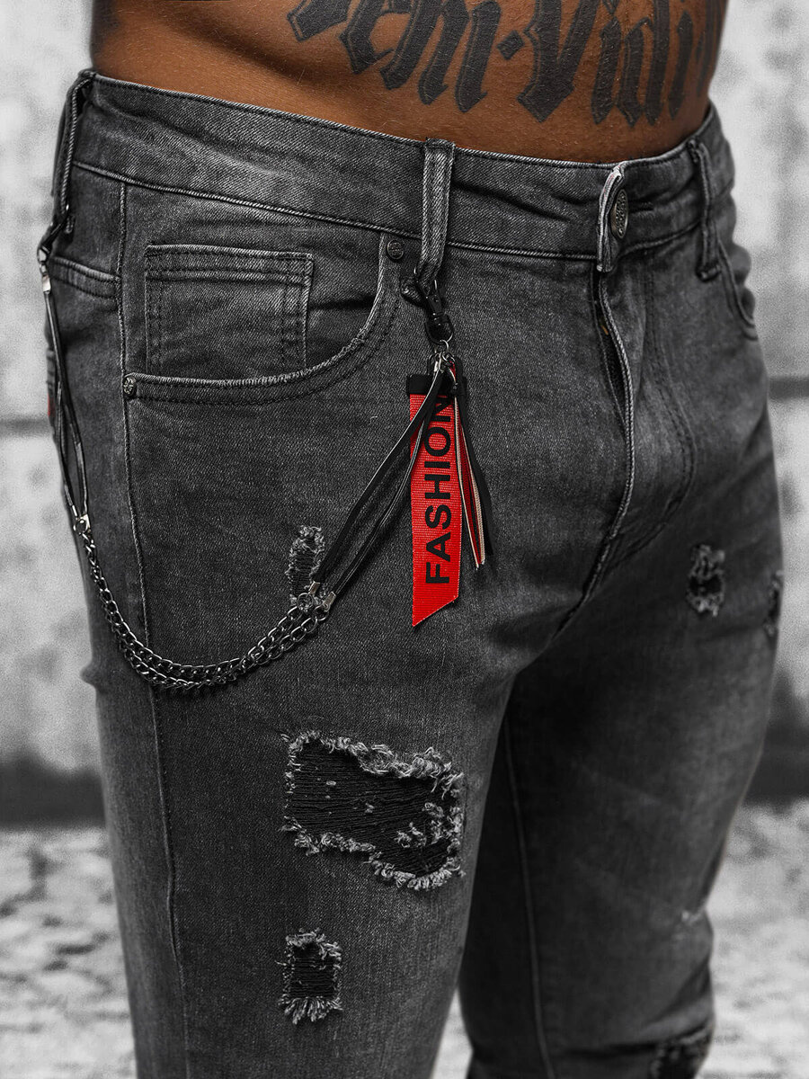 Nowoczesny styl i wygoda w jednym - Spodnie jeansowe męskie czarne OZONEE DR/TF246