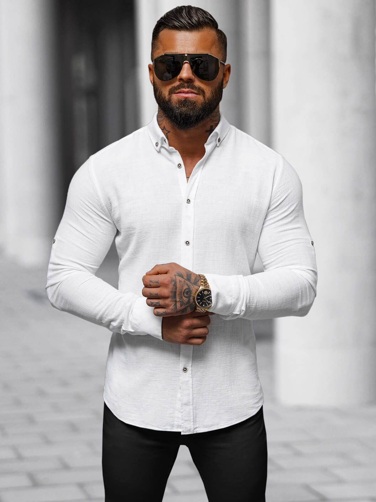 Elegancja i komfort w jednym - Koszula męska biała OZONEE O/V93
