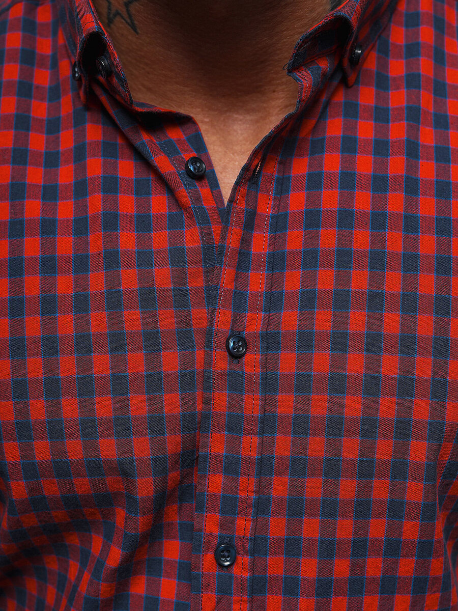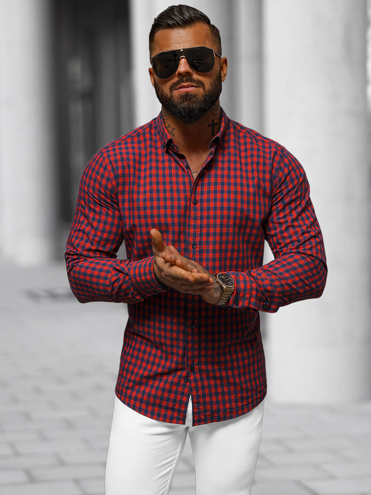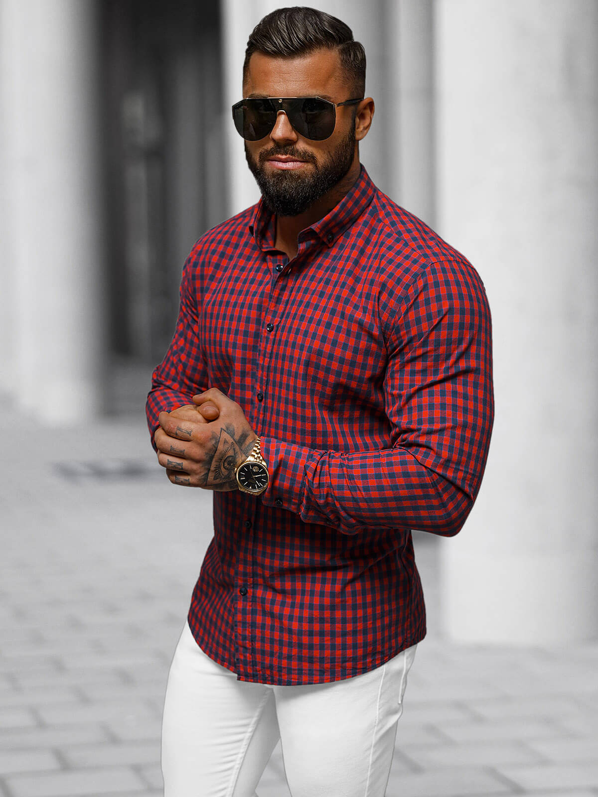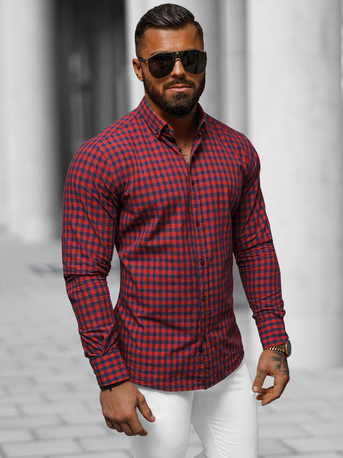 Koszula męska w kratę czerwona OZONEE O/V95 - modny wybór na każdą okazję