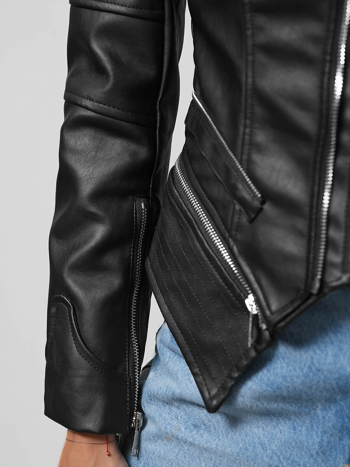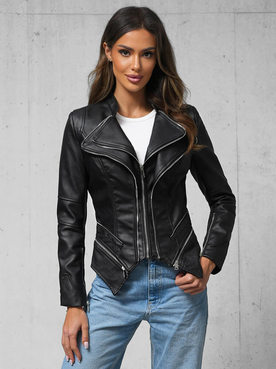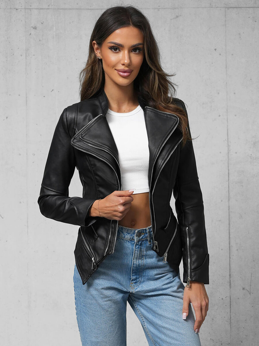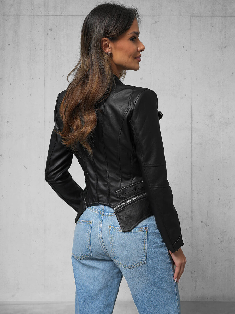 Styl i elegancja w jednym - Kurtka skórzana damska czarna OZONEE JS/11Z8116