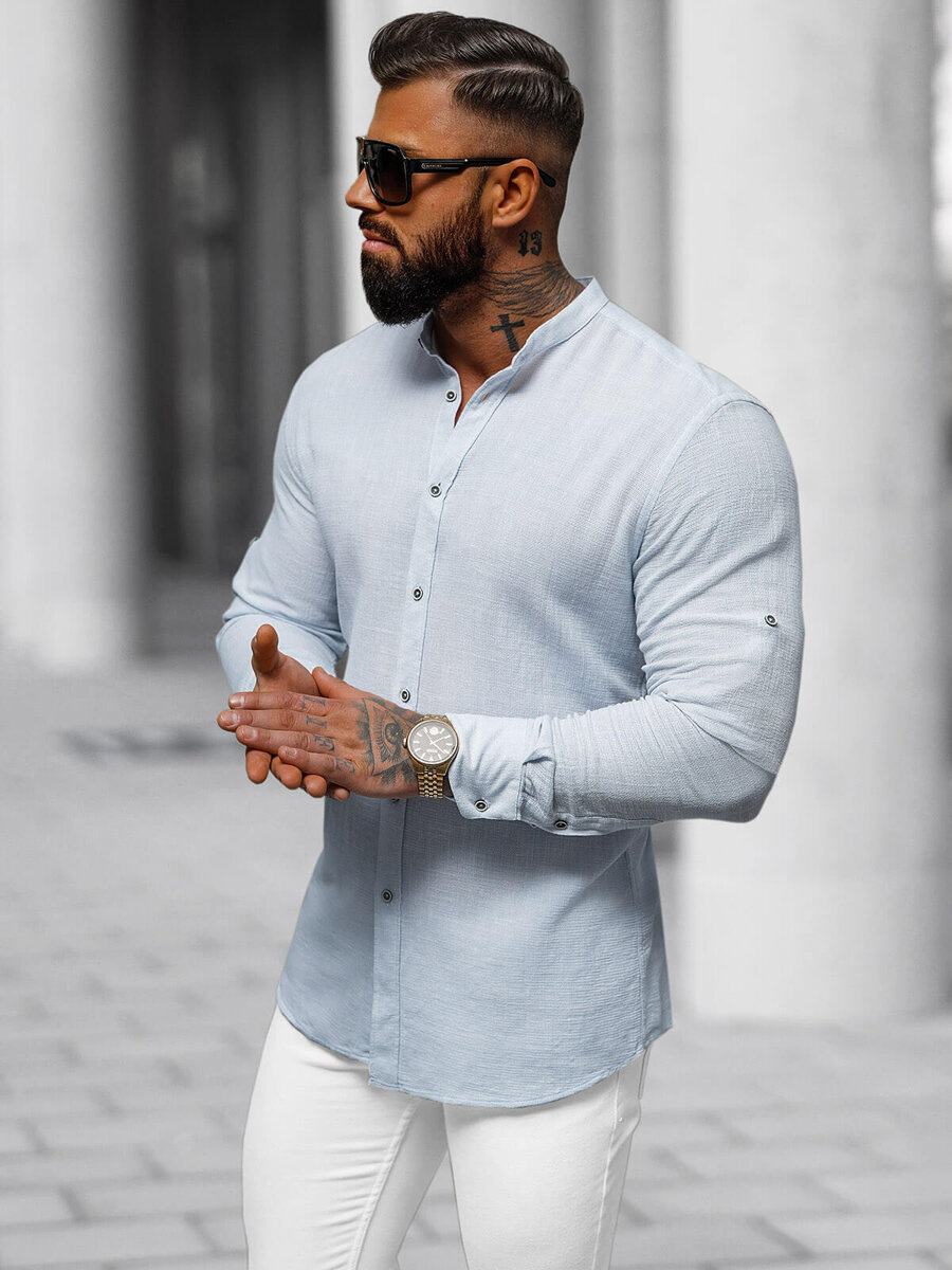 Prezentowana koszula męska jasno-niebieska OZONEE O/V84 to kwintesencja klasycznego stylu w nowoczesnej odsłonie. Ten uniwersalny element garderoby jest idealnym połączeniem komfortu i elegancji, co czyni go niezastąpionym wyborem na co dzień i na specjalne okazje. Klasyczny wzór koszuli podkreśla jej uniwersalny charakter, a dodatkowo zapinana na guziki, z długim rękawem i kołnierzem typu stójka dodaje jej niepowtarzalnego charakteru. Wykonana w 100% z bawełny, koszula gwarantuje najwyższy komfort noszenia.