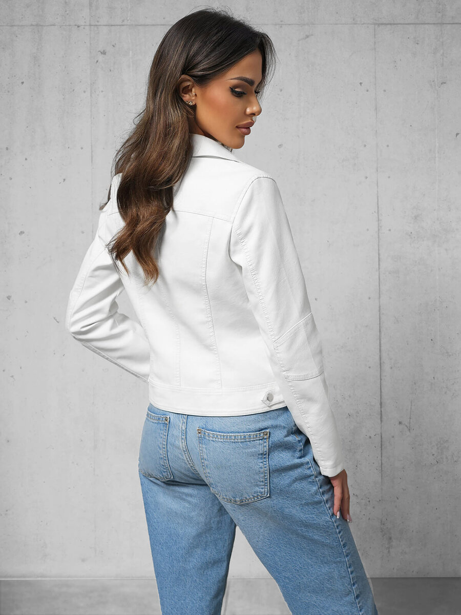 Wyjątkowy design i wygoda w jednym - Kurtka skórzana damska ramoneska biała OZONEE O/G88