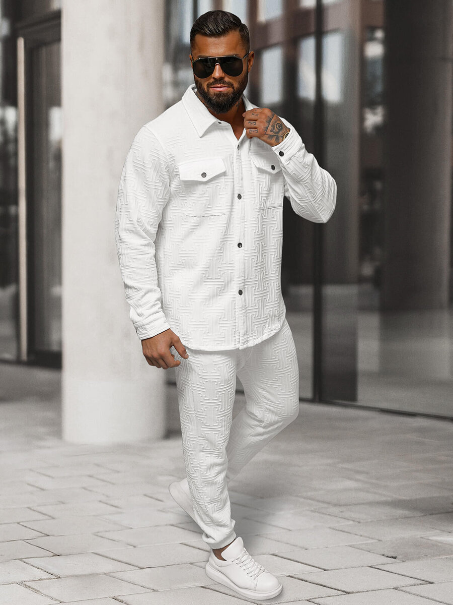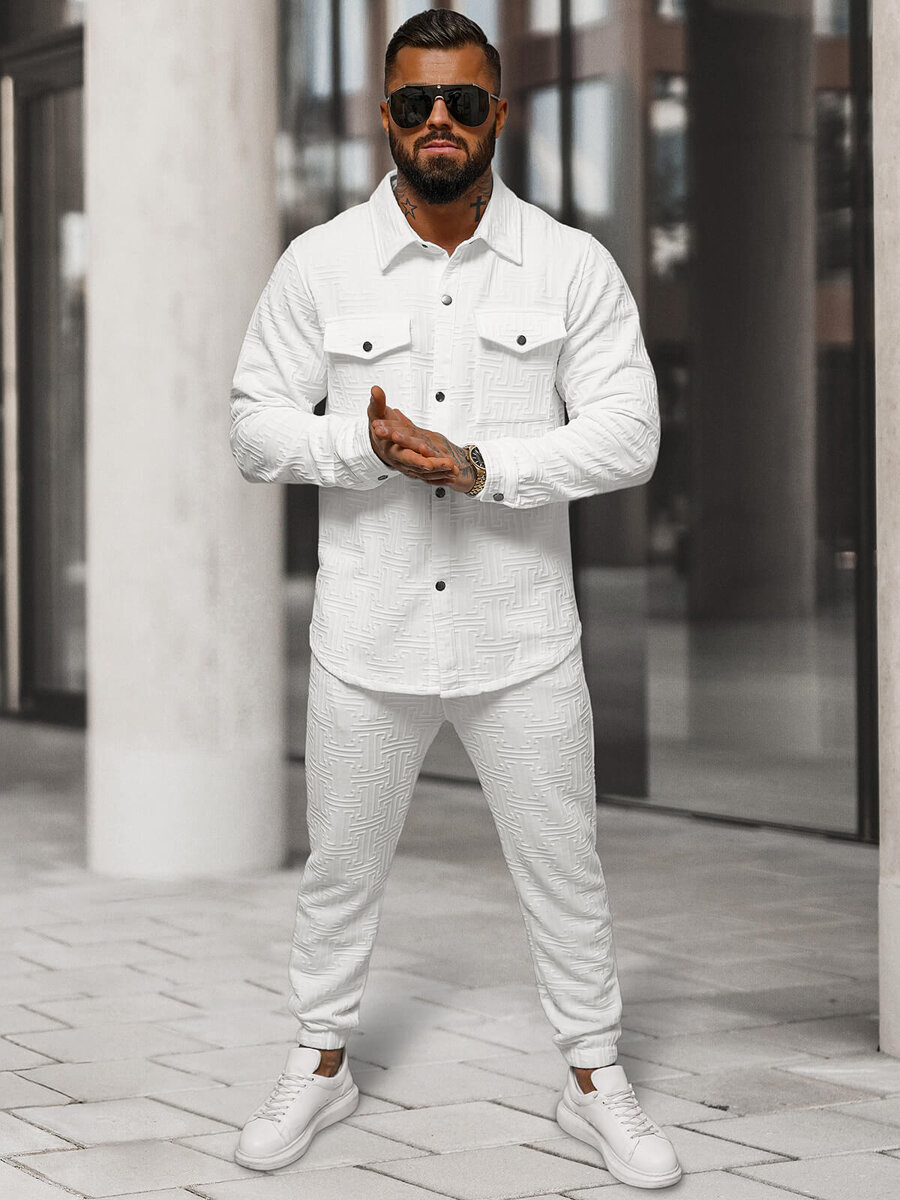 Komplet dresowy męski biały OZONEE O/3C105 - elegancja spotyka komfort