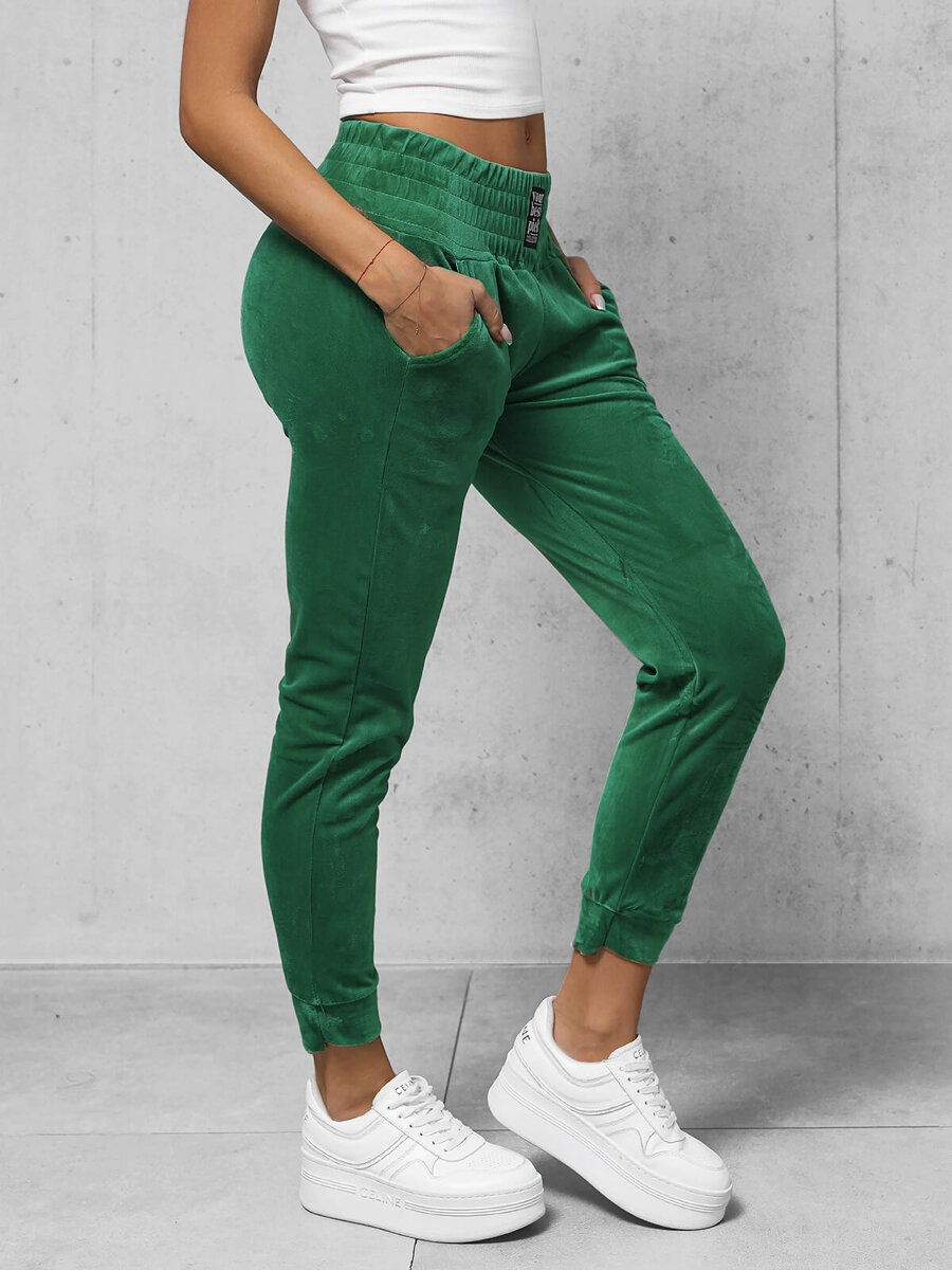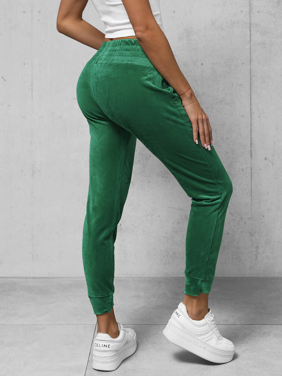 Niezwykły styl i wygoda w jednym - Spodnie dresowe damskie welurowe zielone OZONEE O/CR98108