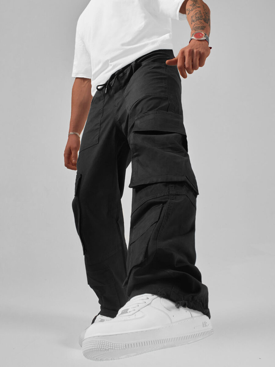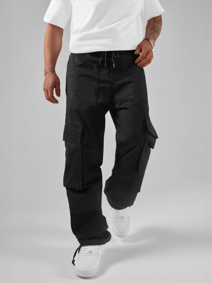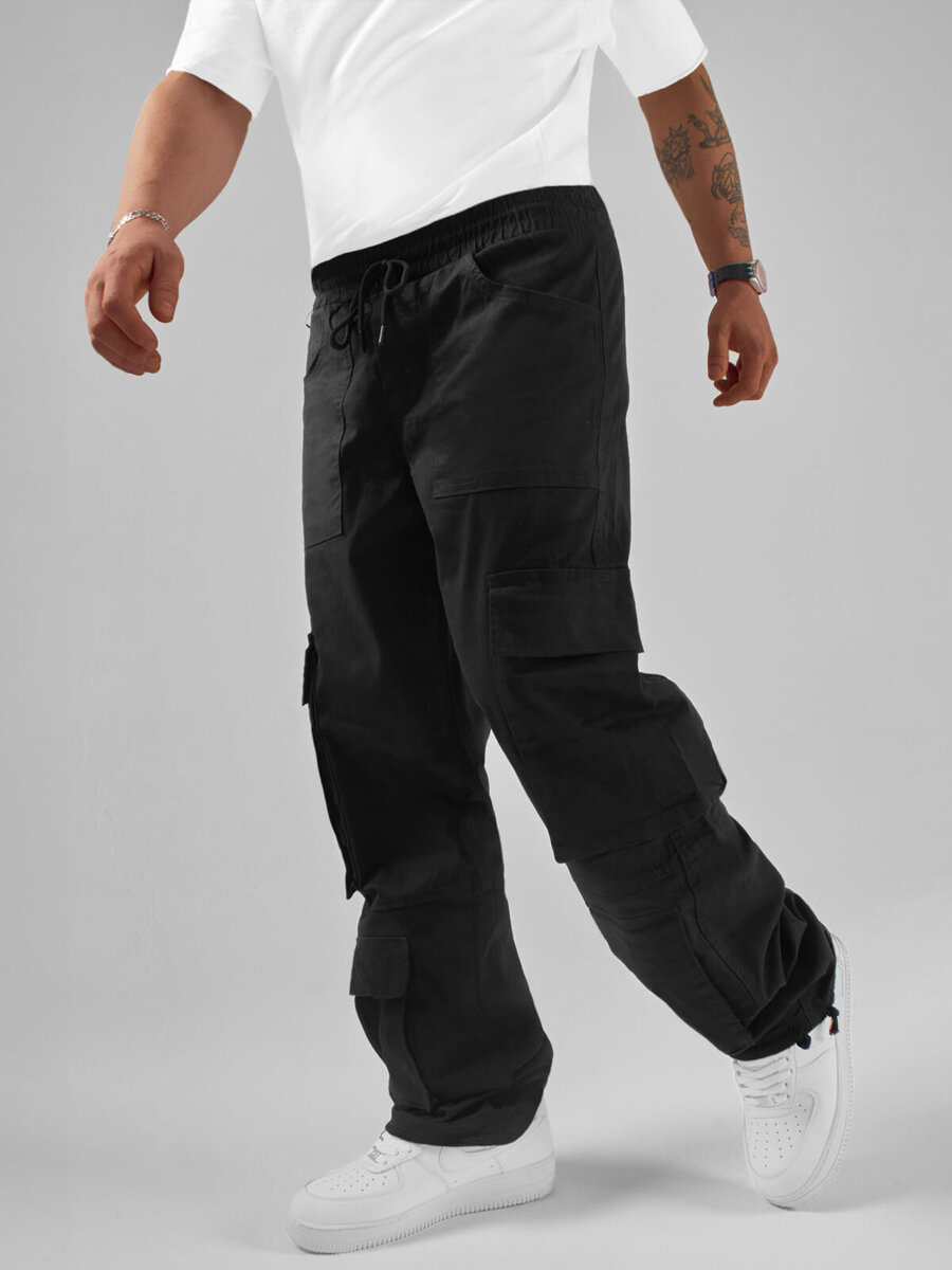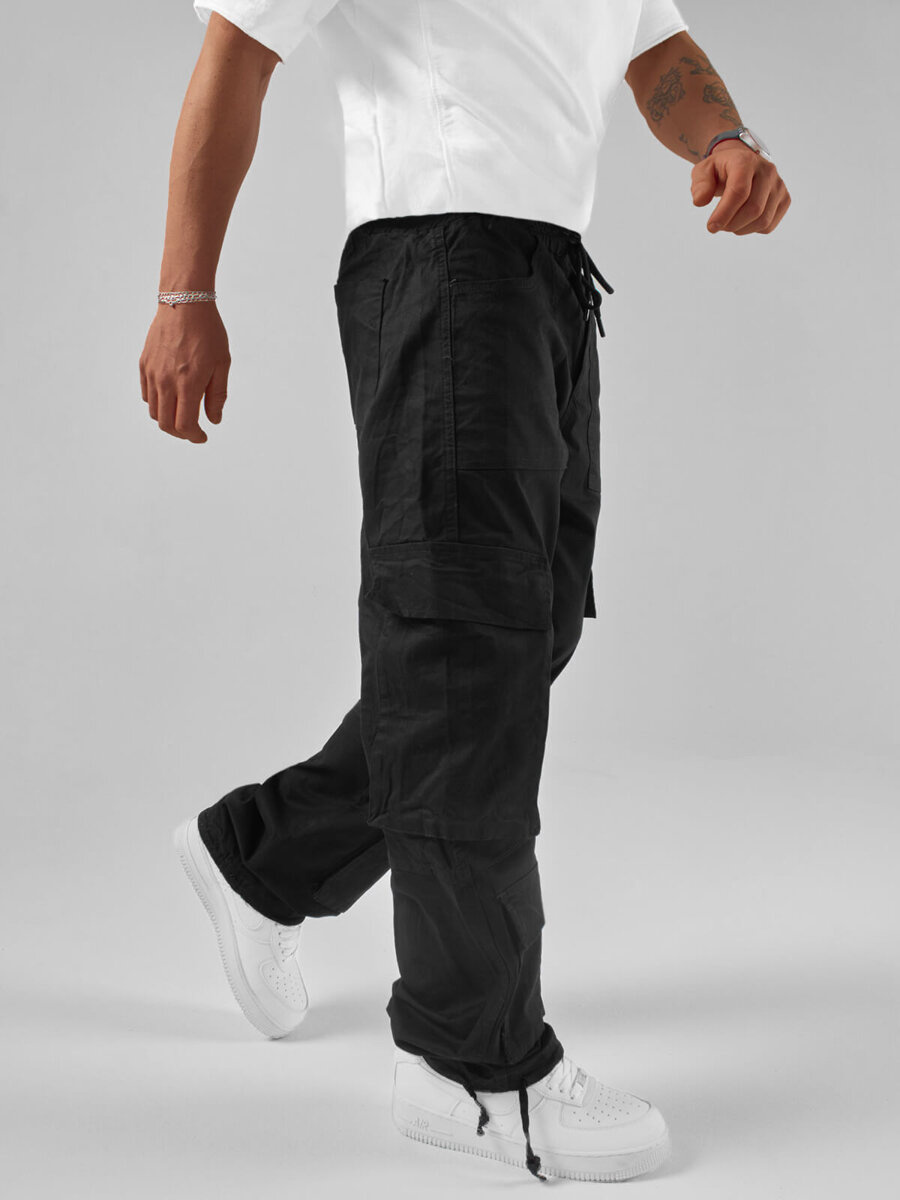 Styl i wygoda w jednym - Spodnie męskie cargo relaxed czarne OZONEE O/G3041