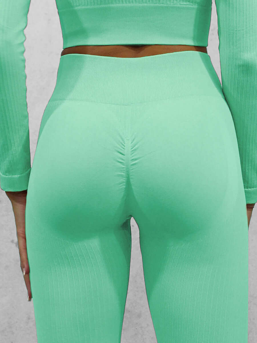 Rozpinana bluza z długim rękawem, Legginsy z efektem push-up, Technika "scrunch"