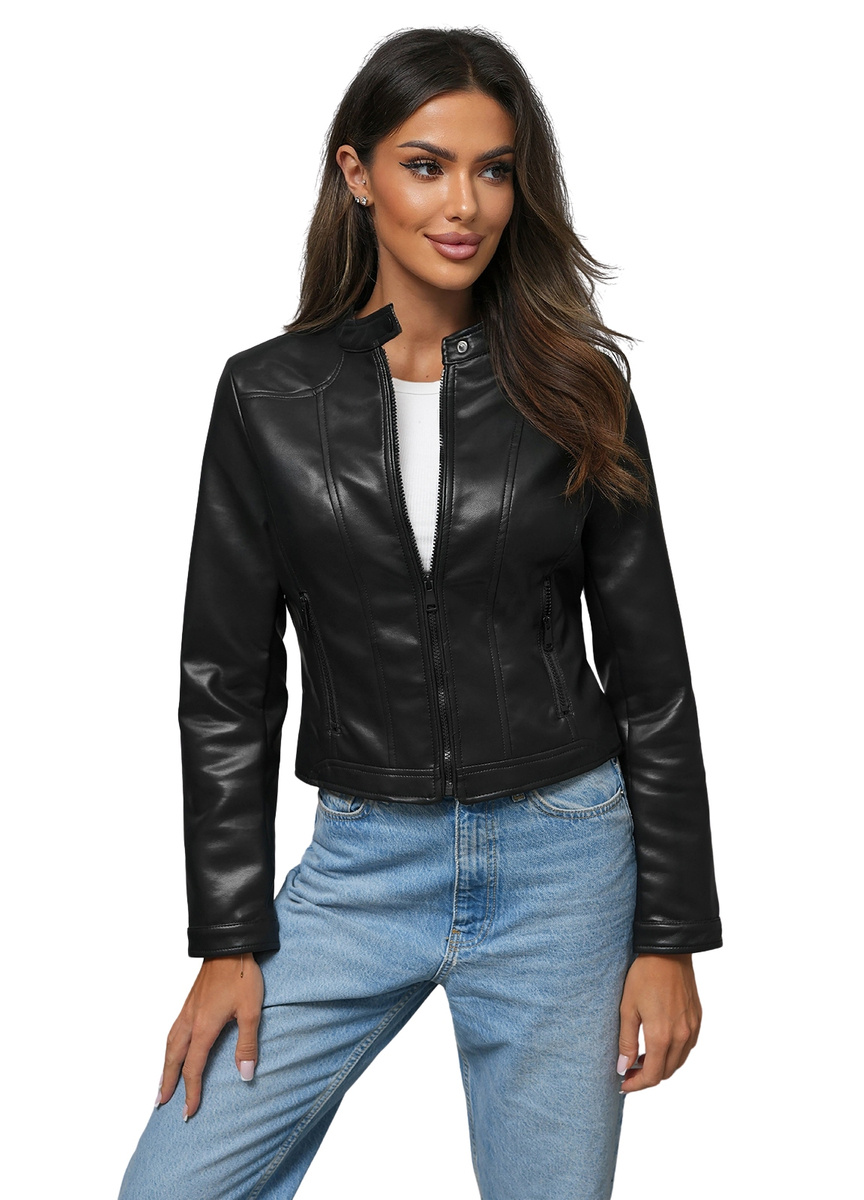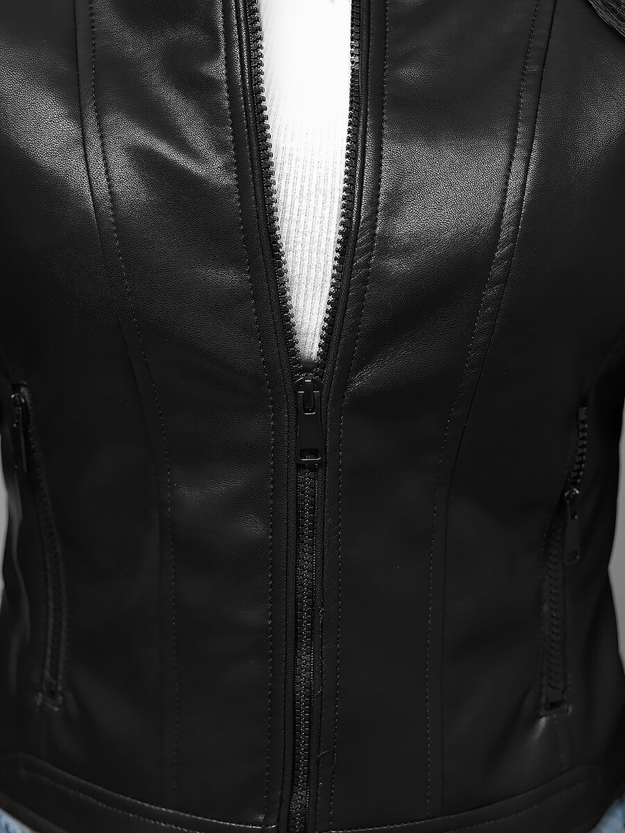 Nowoczesny wyraz miejskiej elegancji - Kurtka skórzana damska czarna OZONEE JS/11Z8127