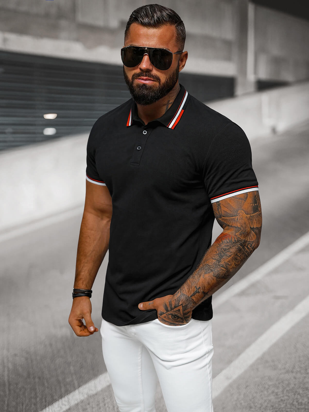 Koszulka męska polo czarna OZONEE O/DA736 - elegancja spotyka komfort