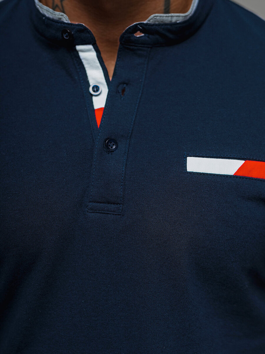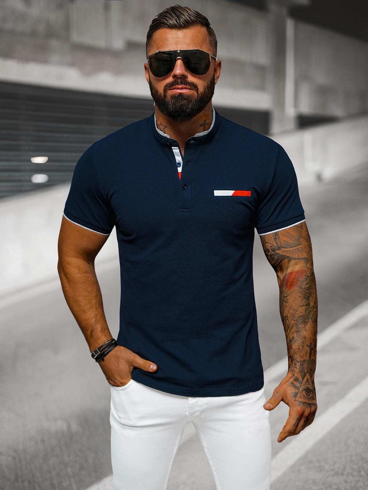 Prezentujemy koszulkę męską polo, która łączy w sobie elegancję z wygodą. Ten model z nowej kolekcji marki OZONEE to kwintesencja męskiego stylu - klasyczny krój, granatowy kolor i detale takie jak stójka czy imitacja kieszonki dodają koszulce charakteru. Wykonana z komfortowej dzianiny, koszulka zapewnia doskonałe dopasowanie do sylwetki oraz nieograniczoną swobodę ruchów. Ściągacze przy rękawach dodają koszulce sportowego charakteru, a zapinanie na guziki pozwala na indywidualne dostosowanie dekoltu.