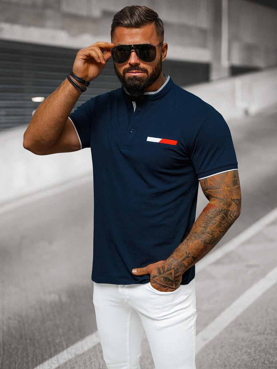 Styl i wygoda w jednym - Koszulka męska polo granatowa OZONEE O/DA711