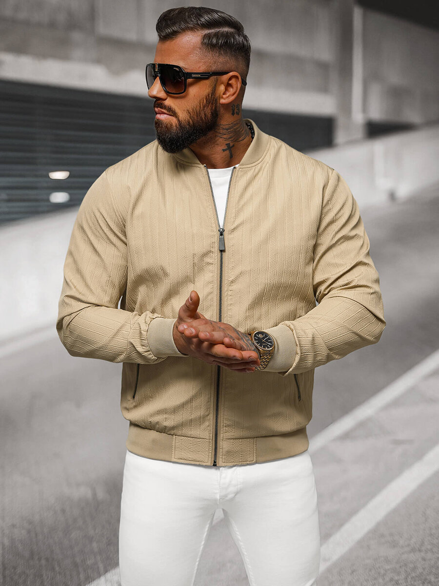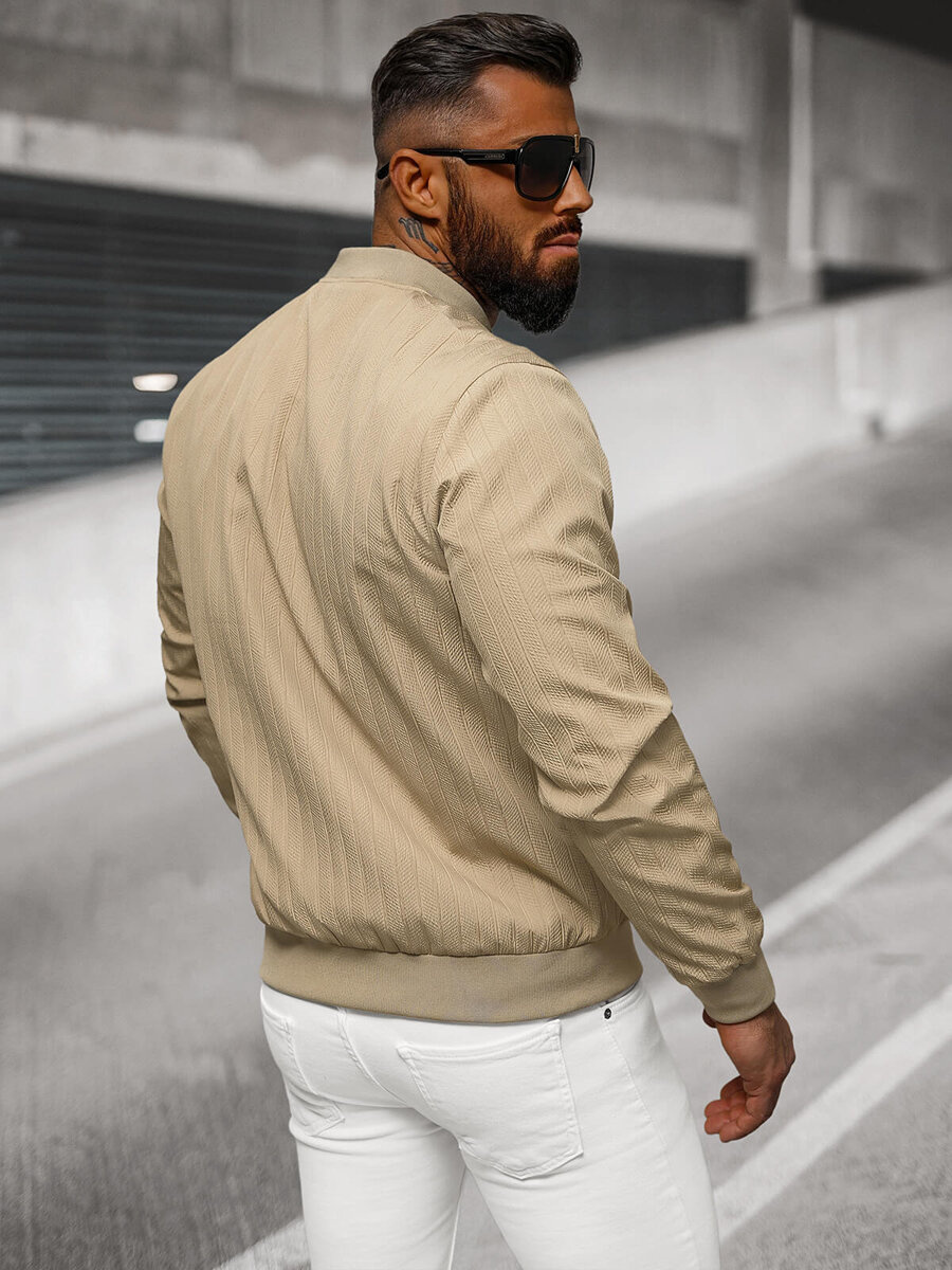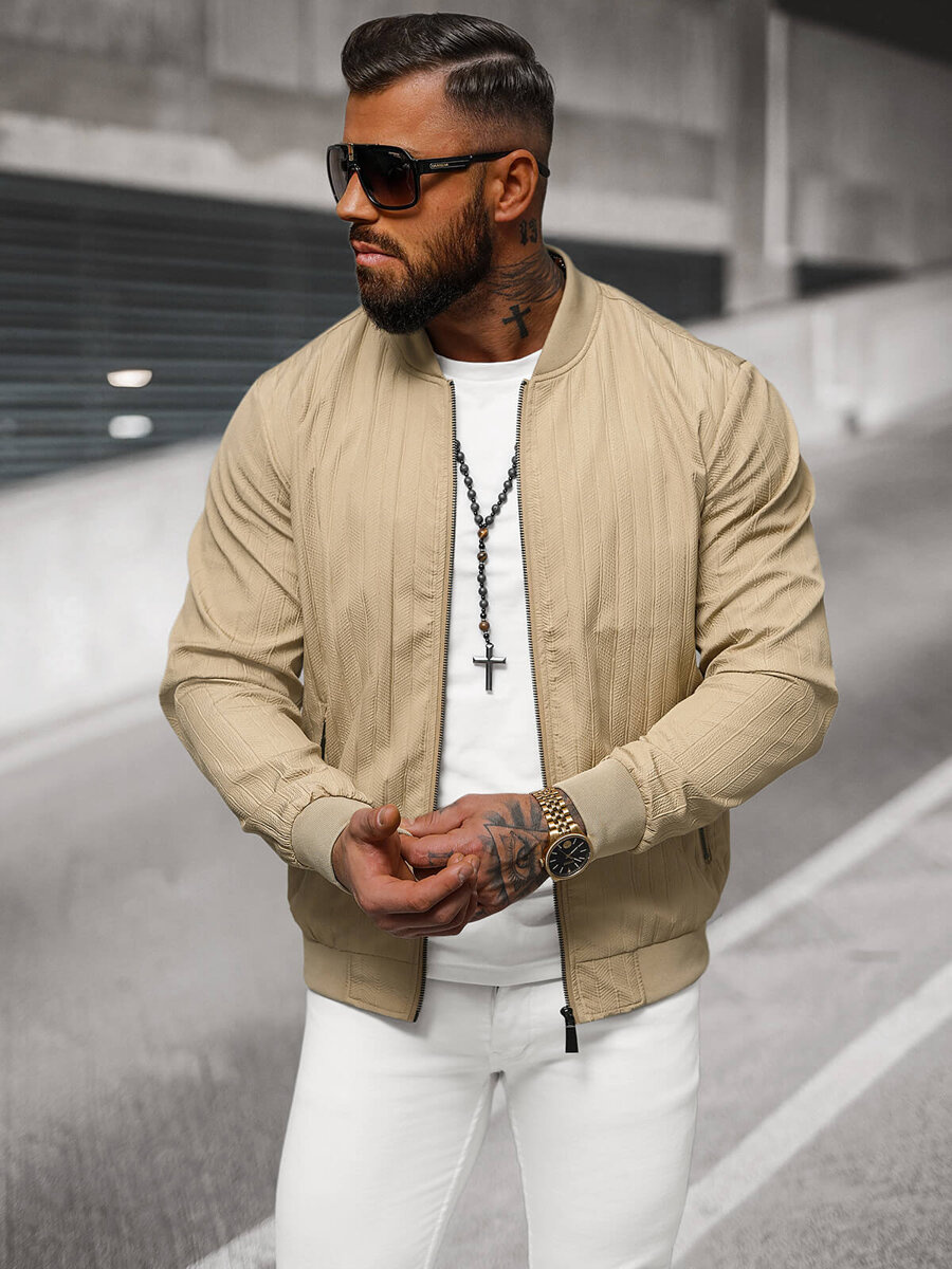 Stylowy dodatek dla każdego mężczyzny - Kurtka męska bomberka beżowa OZONEE O/7701