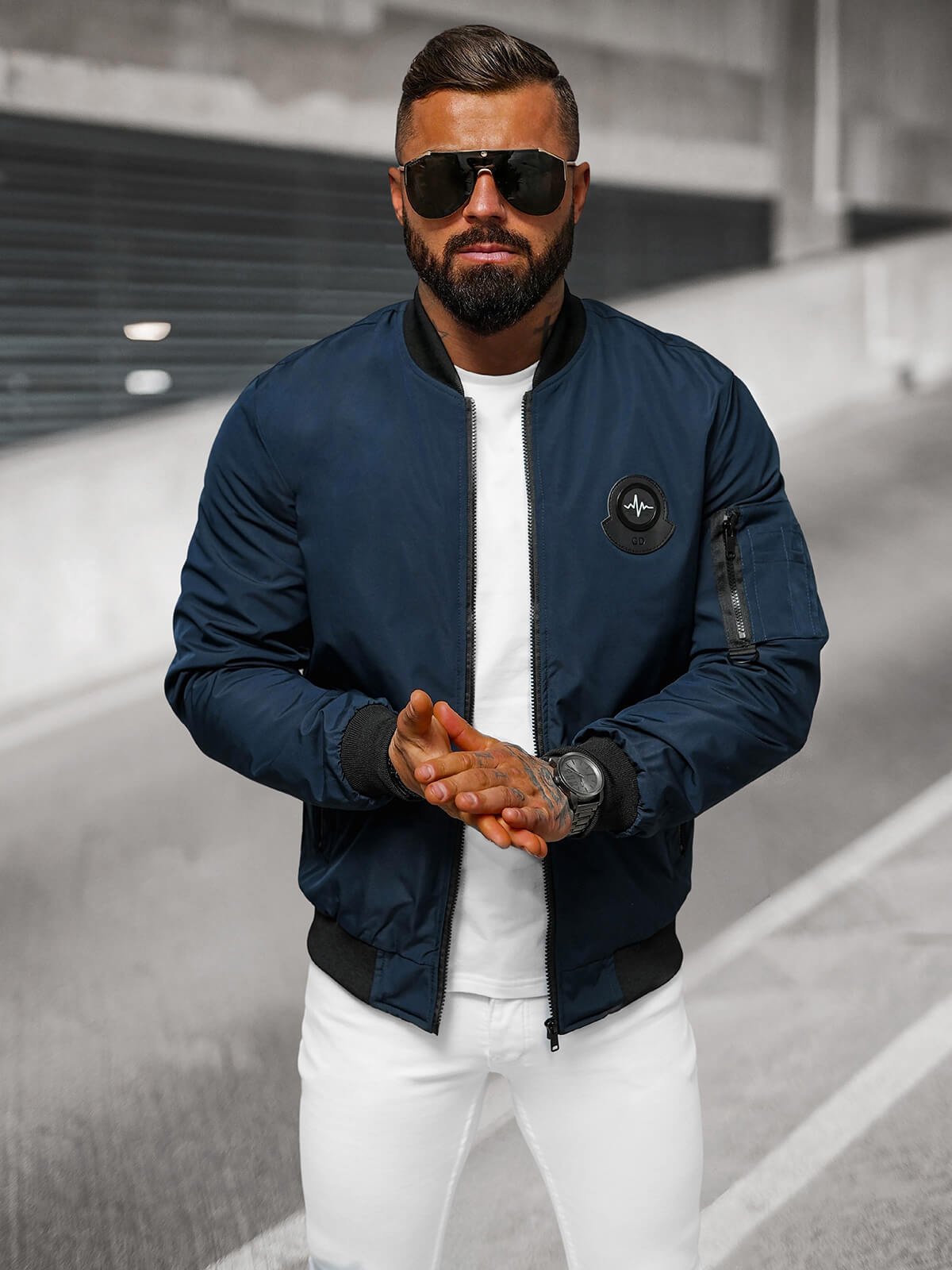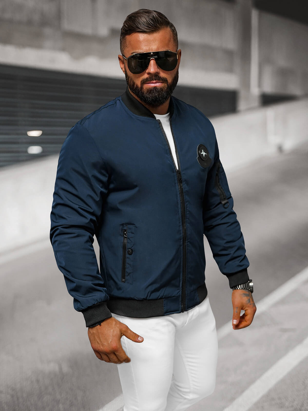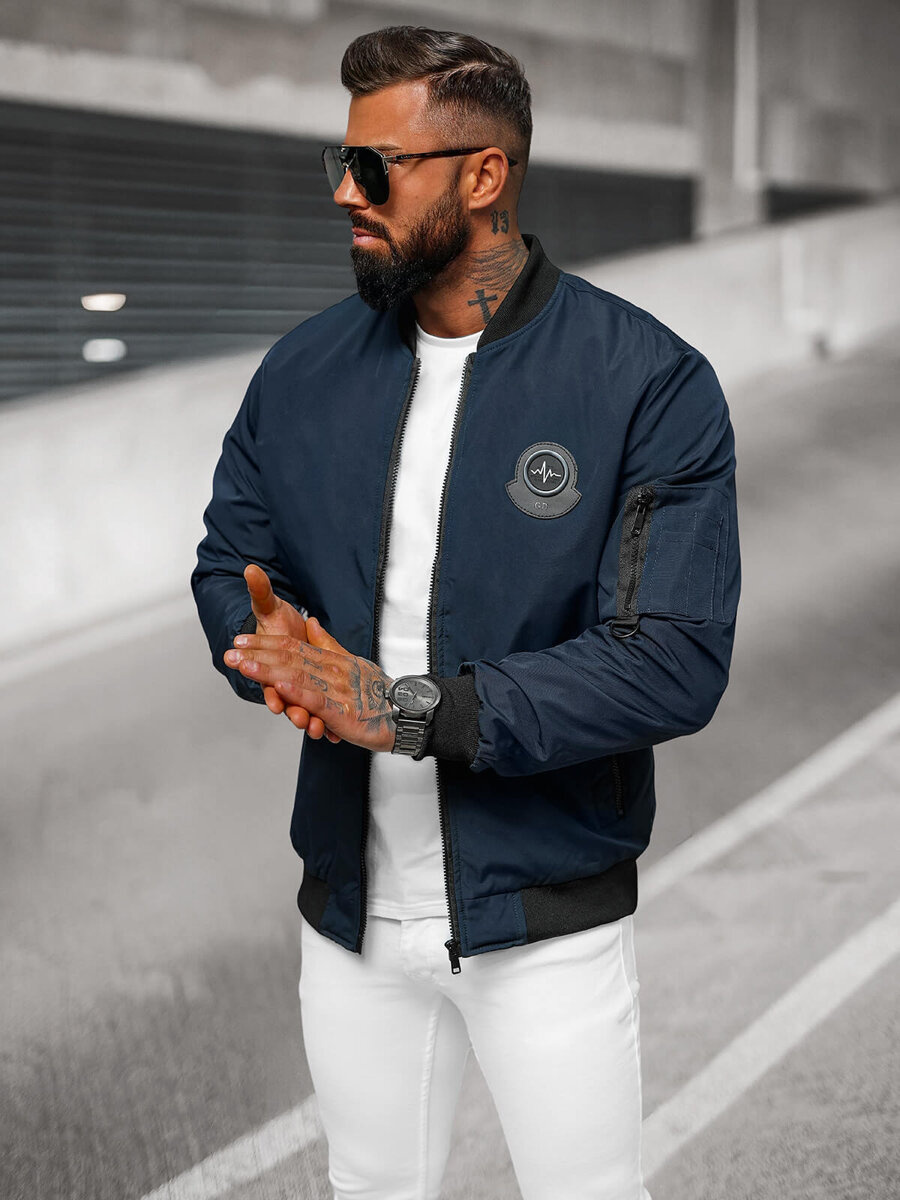 Wytworny styl z kurtką męską bomberką granatową OZONEE JS/84M3036/215