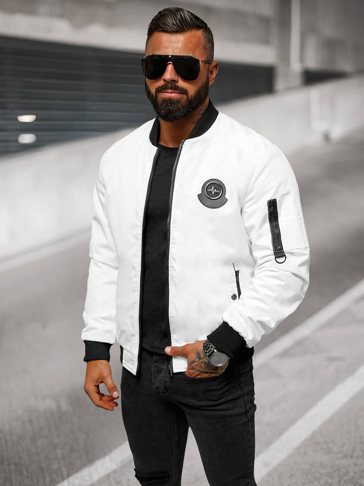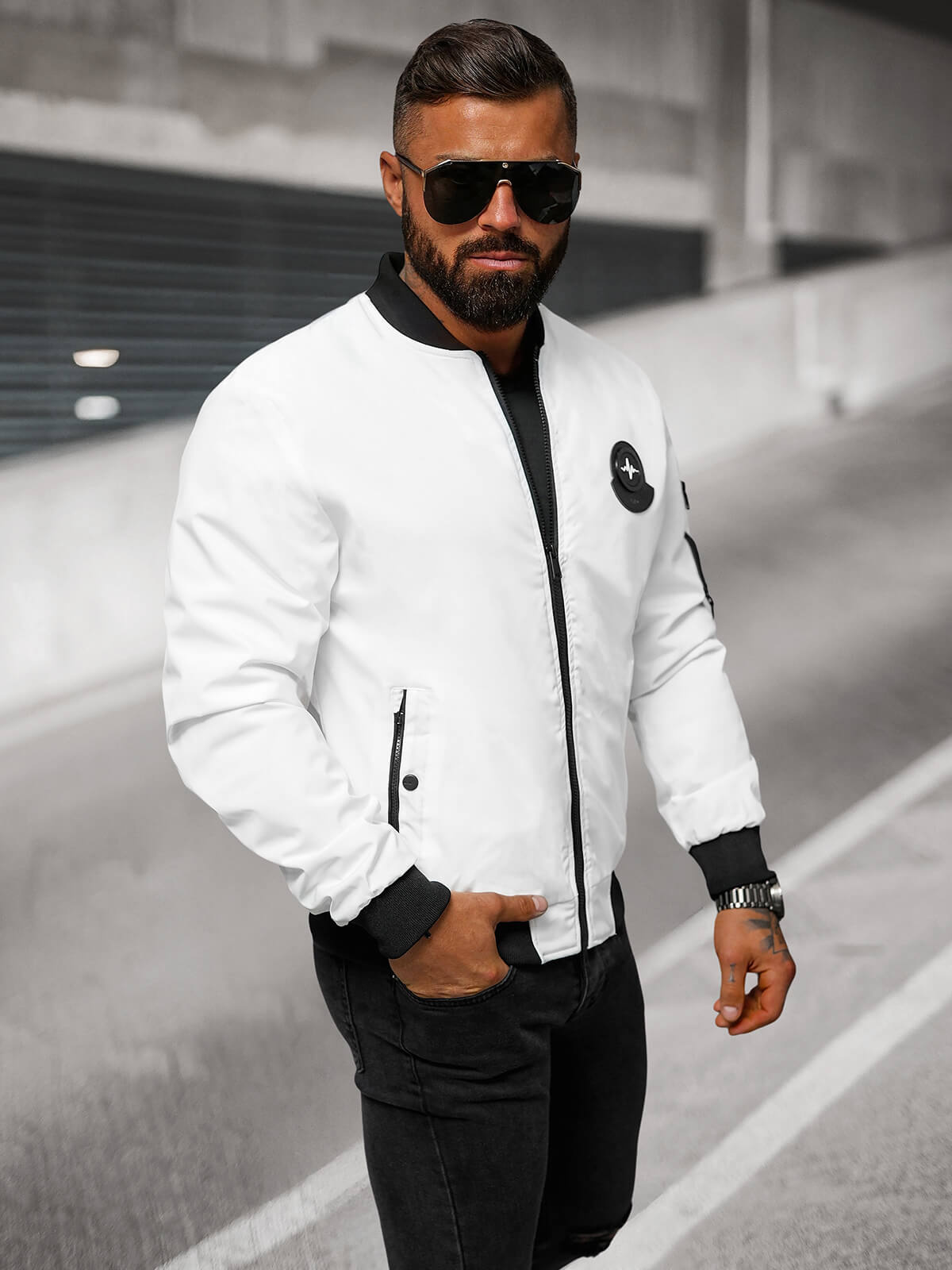 Kurtka męska bomberka biała OZONEE JS/84M3036/281 - wygoda spotyka styl