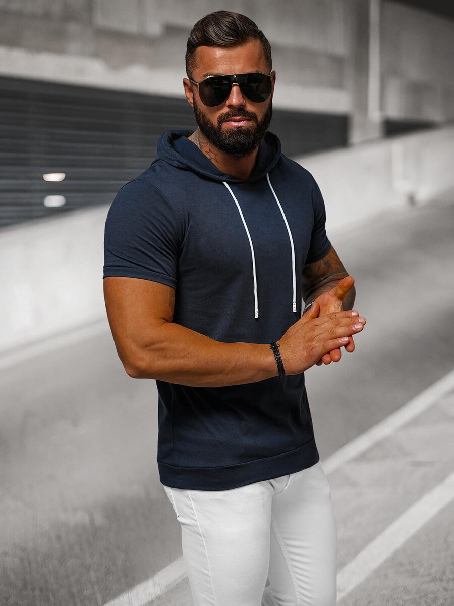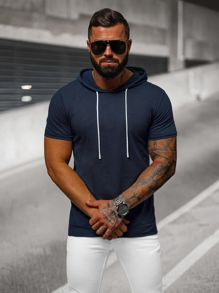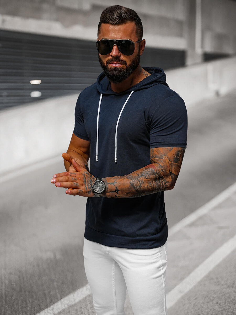 T-shirt męski z kapturem granatowy OZONEE JS/8T955/25 - Stylowy i wygodny