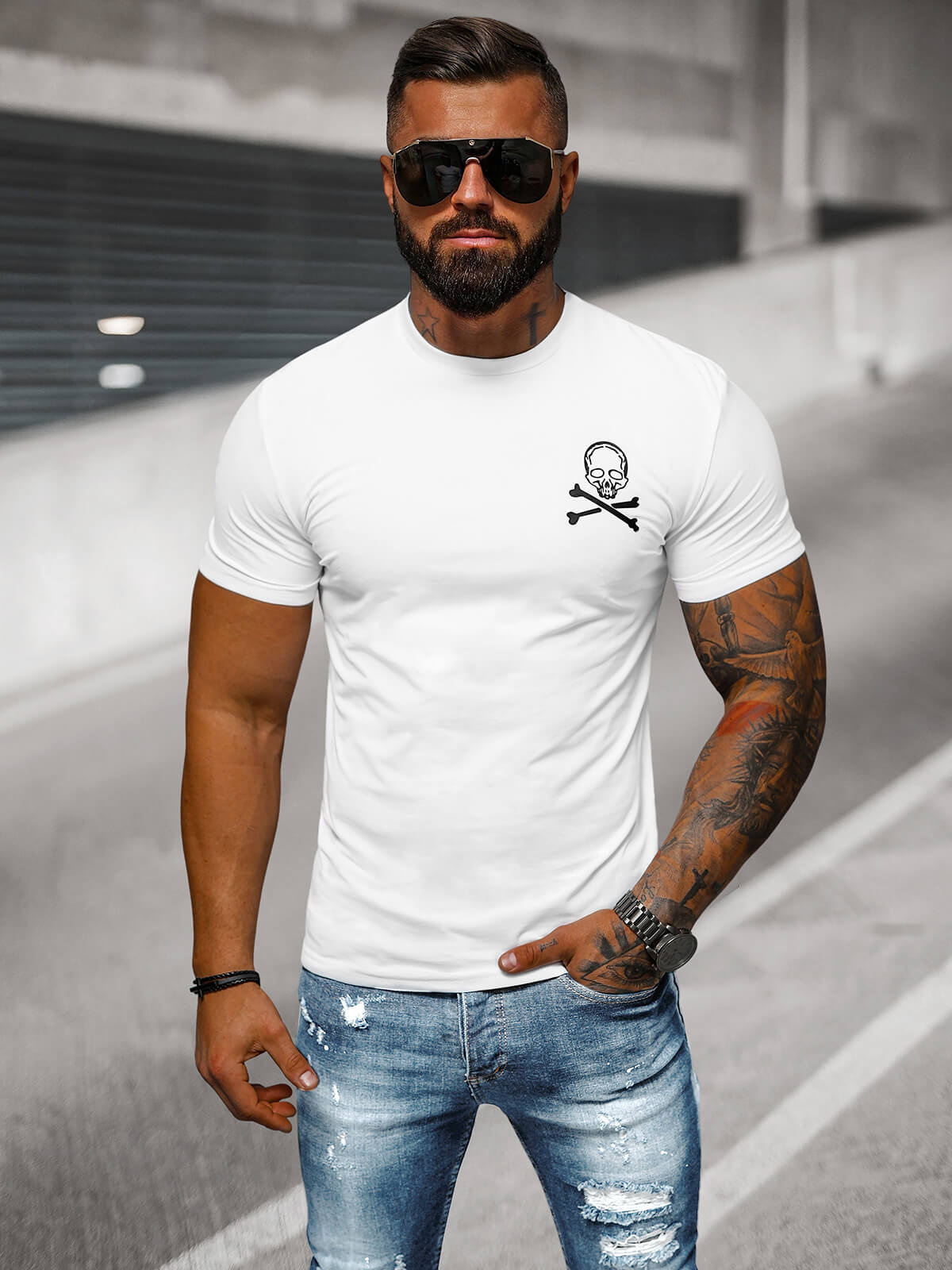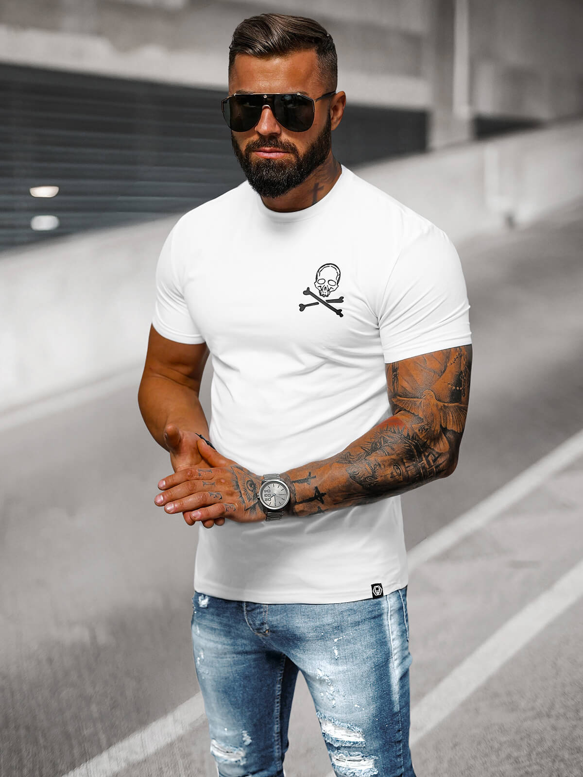 Nowoczesny T-shirt męski slimfit biały OZONEE NB/MT3066 - modny dodatek do Twojej garderoby