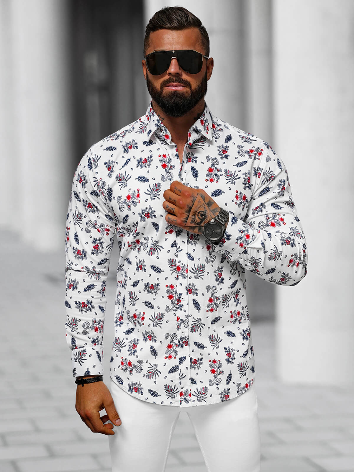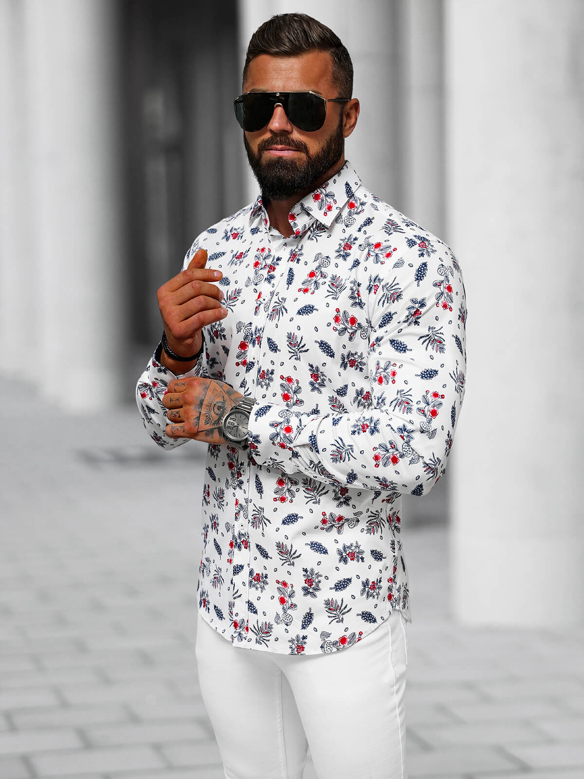 Stylowa, elegancka i niezwykle wygodna - to wszystko cechuje koszulę męską białą OZONEE O/733914. Ten niepowtarzalny model z najnowszej kolekcji, zapinany na guziki, to kwintesencja męskiego stylu. Zwraca uwagę modny nadruk, który dodaje koszuli niepowtarzalnego charakteru. Długie rękawy i kołnierz typu kent dopełniają całości, tworząc produkt idealny dla każdego mężczyzny ceniącego sobie klasę i komfort noszenia.