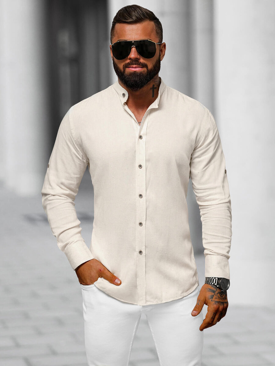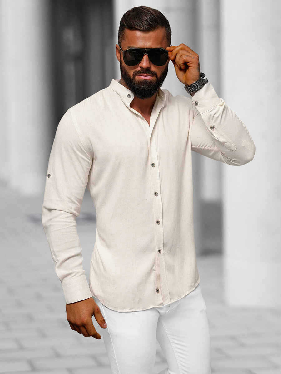 Koszula męska beżowa OZONEE O/242770 - klasyka w nowoczesnym wydaniu