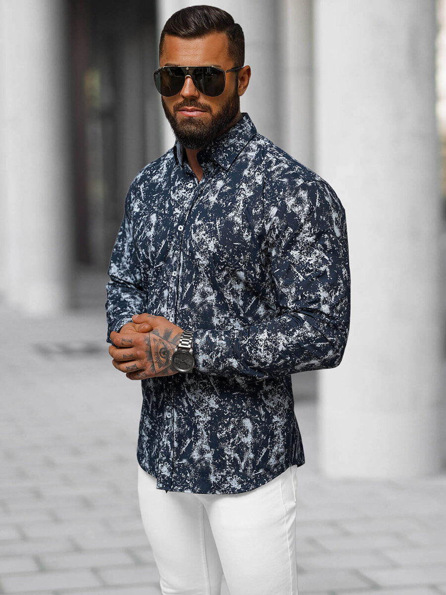 Elegancja w każdym calu - Koszula męska granatowa OZONEE O/536272