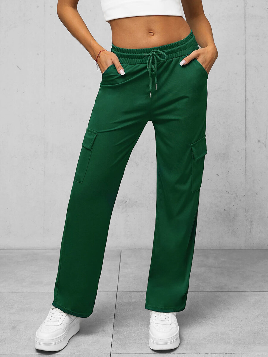 Modne spodnie damskie z szeroką nogawką zielone OZONEE O/HGM6616