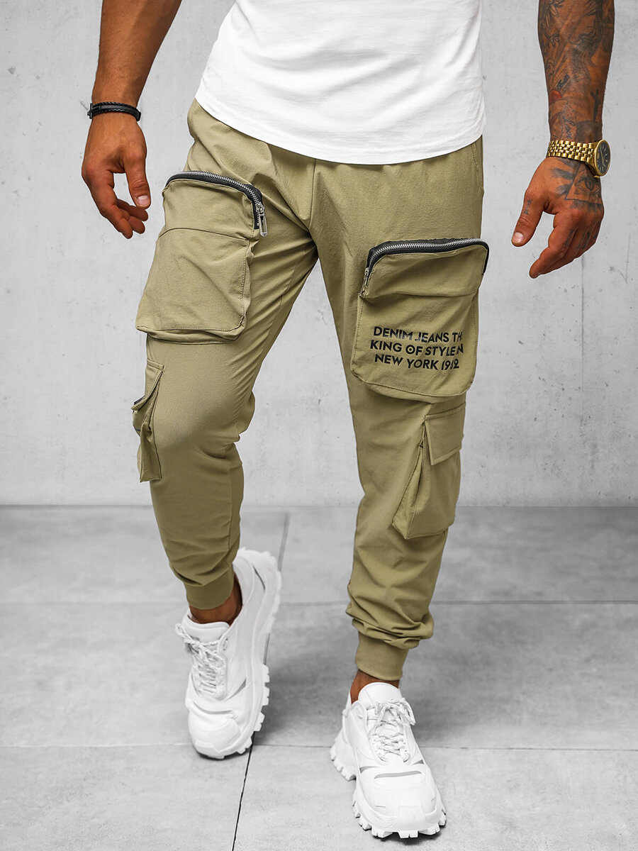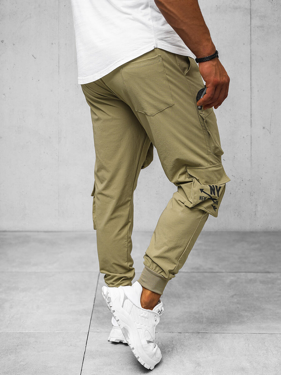 Spodnie męskie chino joggery ciemno-beżowe OZONEE O/PS5513 - wygoda i styl w jednym