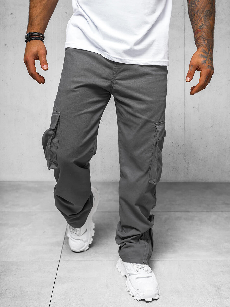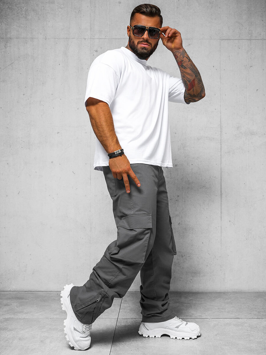 Spodnie męskie cargo relaxed grafitowe OZONEE O/G3016 - Modny wybór dla każdego mężczyzny