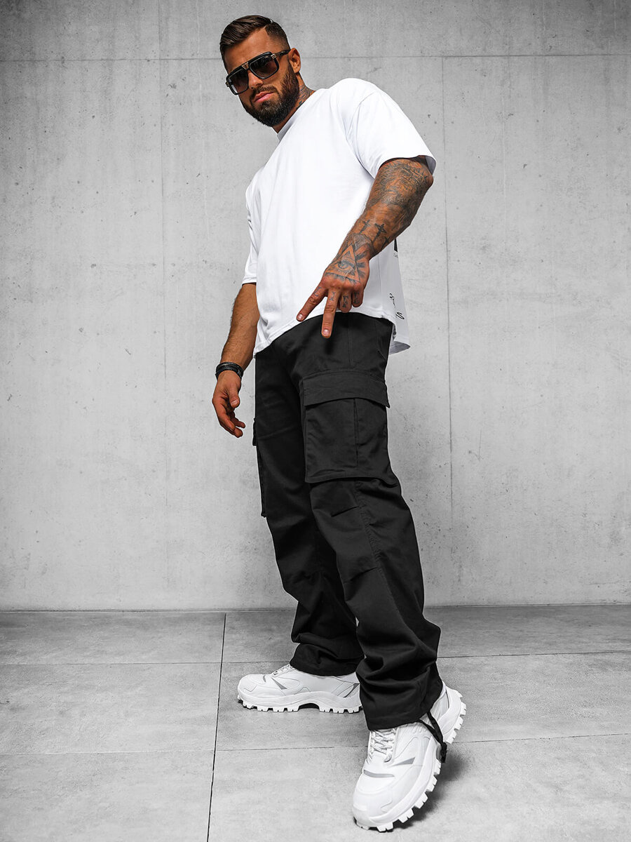 Stylowy i wygodny wybór - Spodnie męskie cargo relaxed czarne OZONEE O/G3179