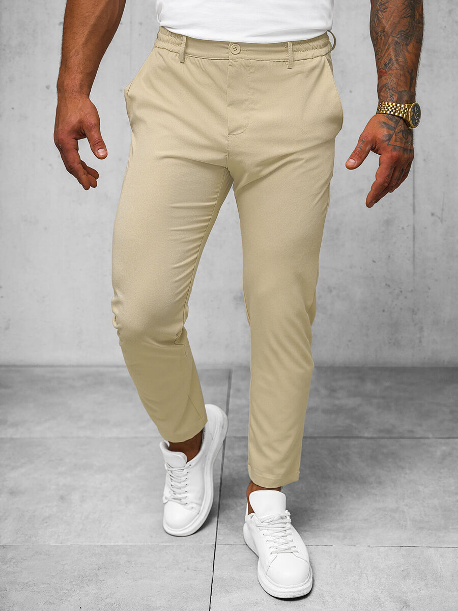 Spodnie męskie chino beżowe OZONEE O/1411SP - Styl i komfort w jednym