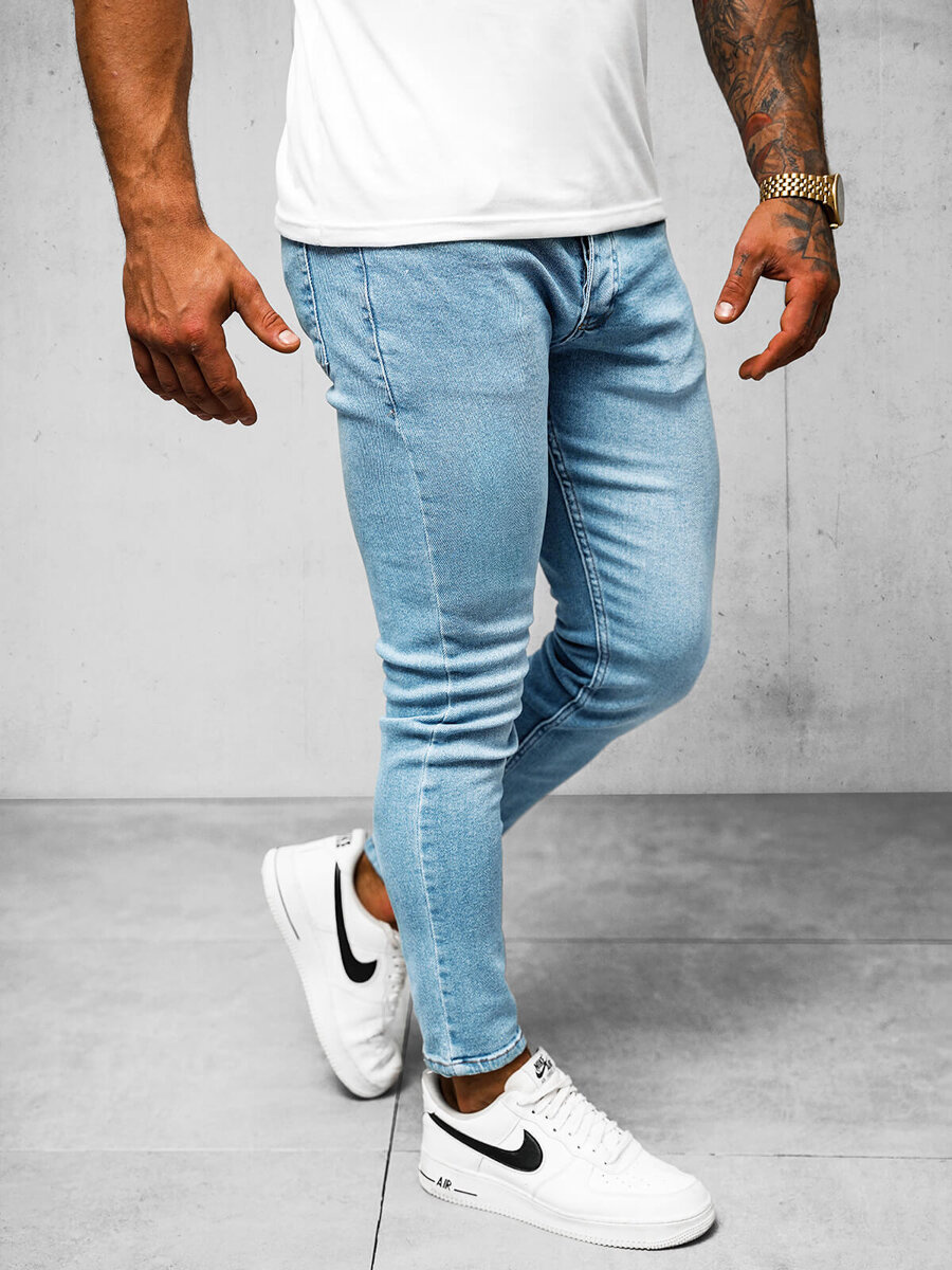 Nowoczesność i styl w jednym - Spodnie jeansowe męskie niebieskie OZONEE O/2335