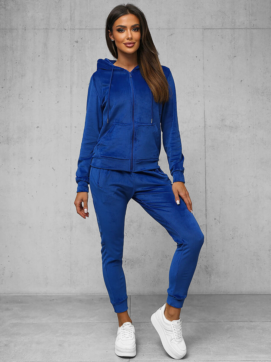 Komplet dresowy damski welurowy indygo OZONEE JS/8C1176/66Z to idealna propozycja dla kobiet ceniących sobie komfort i styl. Wykonany z miękkiego i przyjemnego w dotyku weluru, zapewnia doskonałe warunki noszenia na co dzień. Bluza z kapturem oraz spodnie z kieszeniami po bokach stanowią praktyczny i modny zestaw, który doskonale sprawdzi się w każdej sytuacji. Ściągacze na górze i dole dodają całości sportowego charakteru.