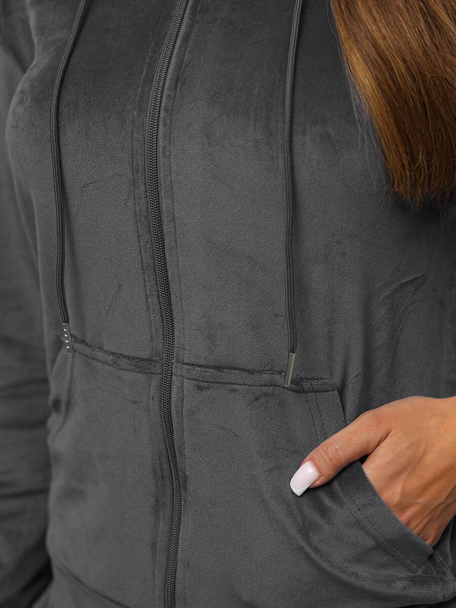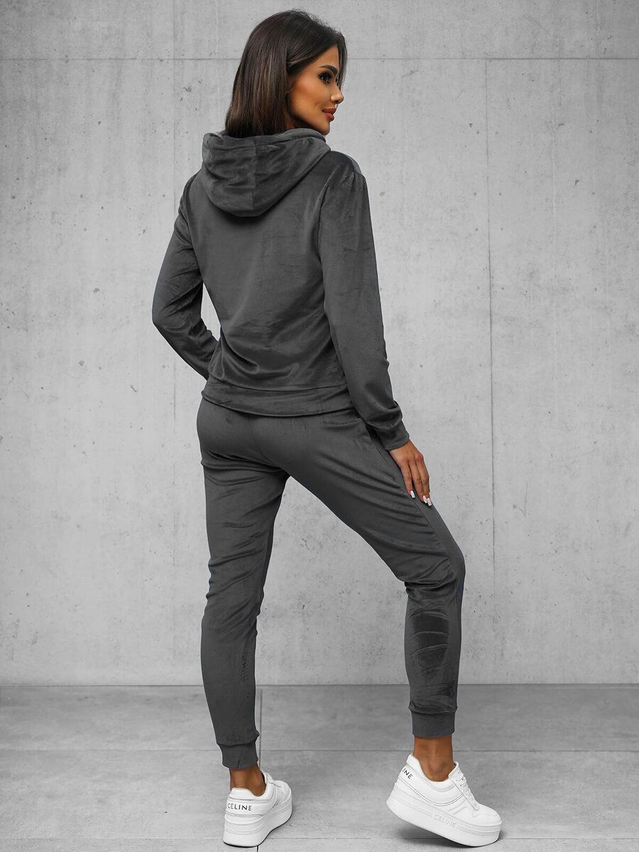 Komfort i styl w jednym - Komplet dresowy damski welurowy grafitowy OZONEE JS/8C1176/6Z