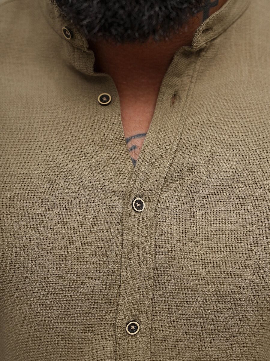 Koszula męska ciemno-beżowa OZONEE O/V112 sprawdzi się zarówno podczas oficjalnych spotkań, jak i w codziennych sytuacjach. Doskonale komponuje się z jeansami, tworząc modny i wygodny zestaw na co dzień. Można ją także połączyć z eleganckimi spodniami i marynarką, tworząc stylizację idealną na biznesowe spotkania. Dzięki uniwersalnemu fasonowi i kolorystyce, koszula ta stanie się niezastąpionym elementem każdej męskiej garderoby.