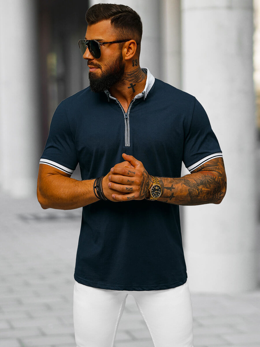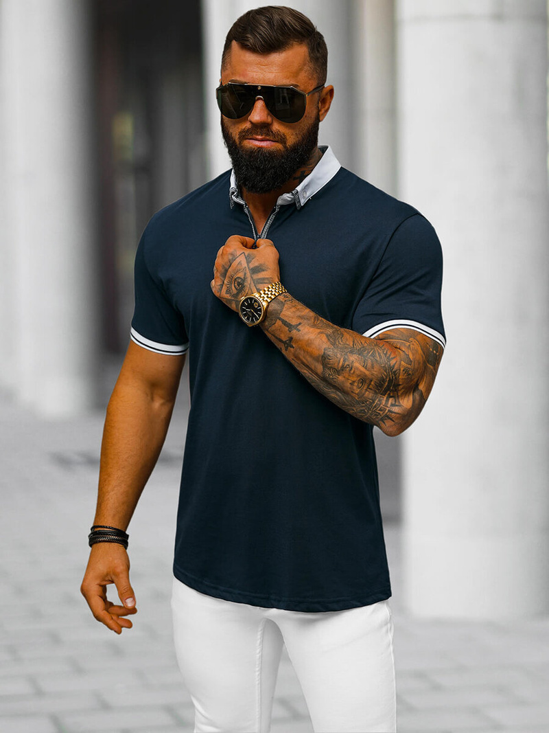 Wyjątkowy styl z koszulką męską polo granatową OZONEE O/DA743