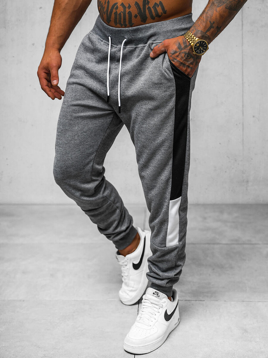 Styl i wygoda w jednym - Spodnie dresowe męskie grafitowe OZONEE JS/8K211