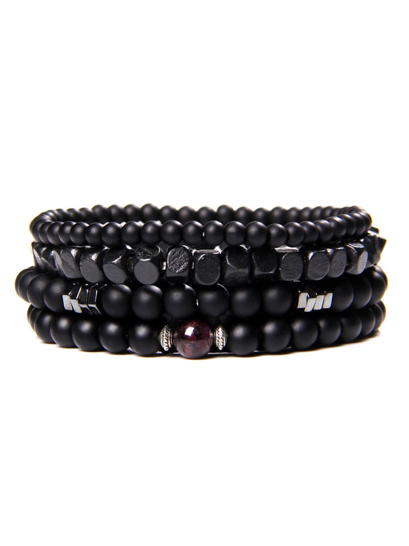 Czarne koraliki, Metalowe wstawki, Koraliki w kontrastowym kolorze na środku, Rozciągliwa żyłka dopasowująca się do nadgarstka
