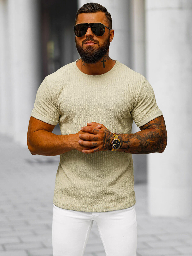 Wyjątkowy komfort i styl z T-shirtem męskim beżowym OZONEE O/7766T