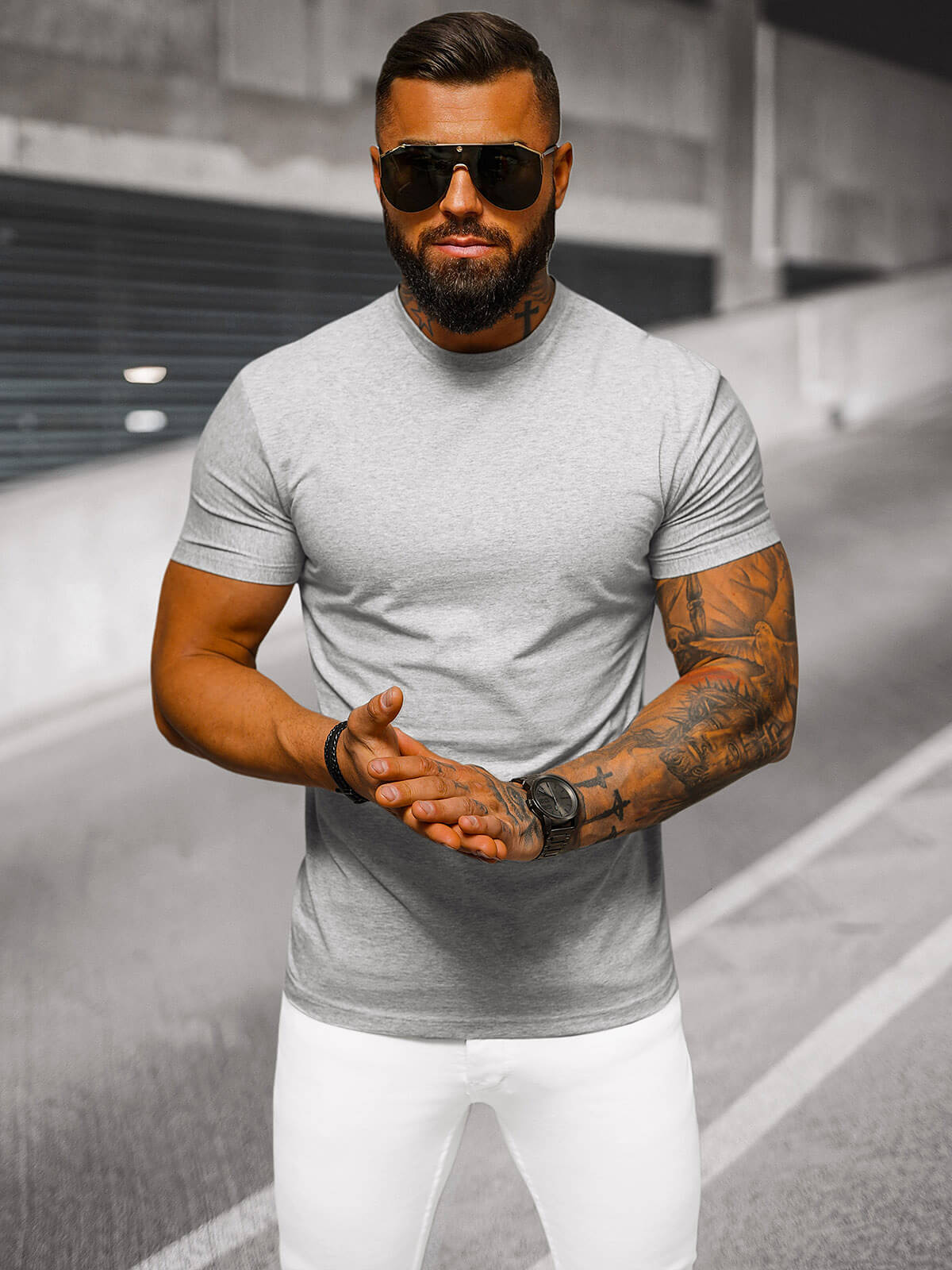 T-shirt męski slim fit szary OZONEE NB/MT3001Z to doskonały wybór na co dzień, do pracy, na spotkanie ze znajomymi czy na weekendowy wypad. Idealnie komponuje się z jeansami, chinosami czy spodniami typu cargo. Dzięki uniwersalnemu kroju i kolorowi, pasuje do wielu stylizacji - od casualowych, przez sportowe, aż po eleganckie. To doskonałe uzupełnienie garderoby każdego mężczyzny, ceniącego sobie komfort i dobry styl.