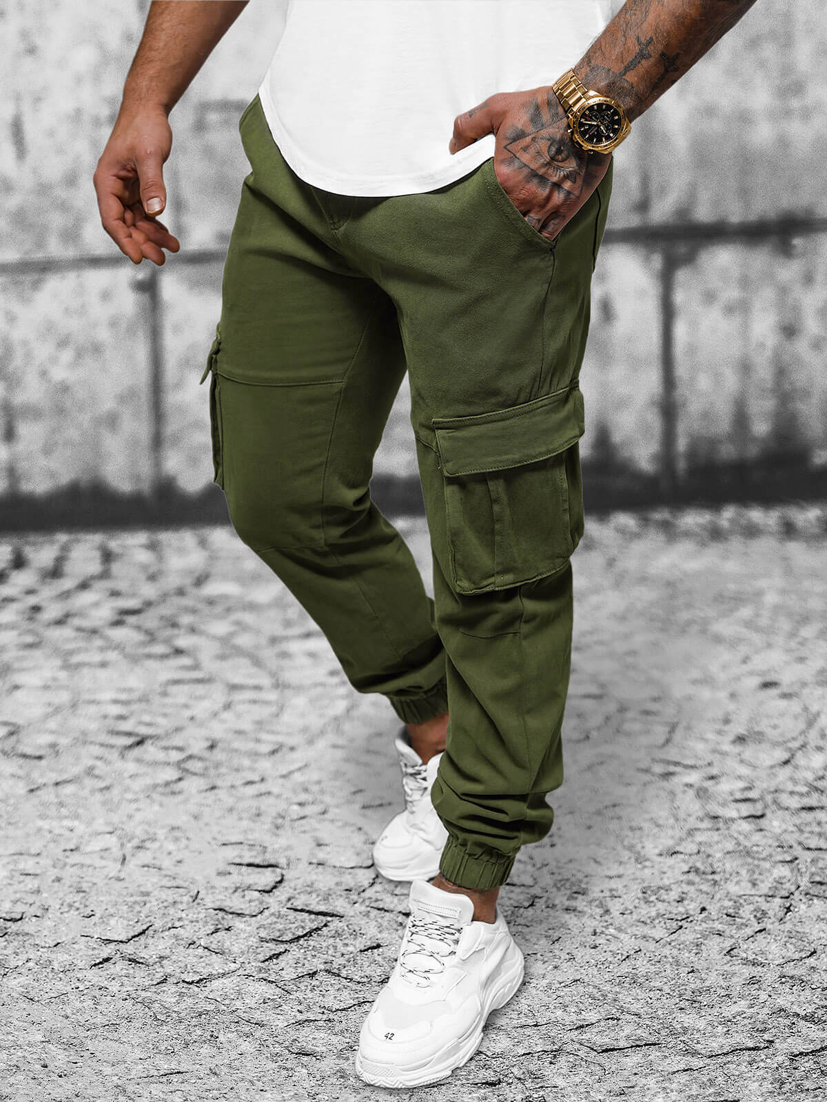 Spodnie męskie joggery zielone OZONEE NB/MP0105MVZ - elegancja spotyka wygodę