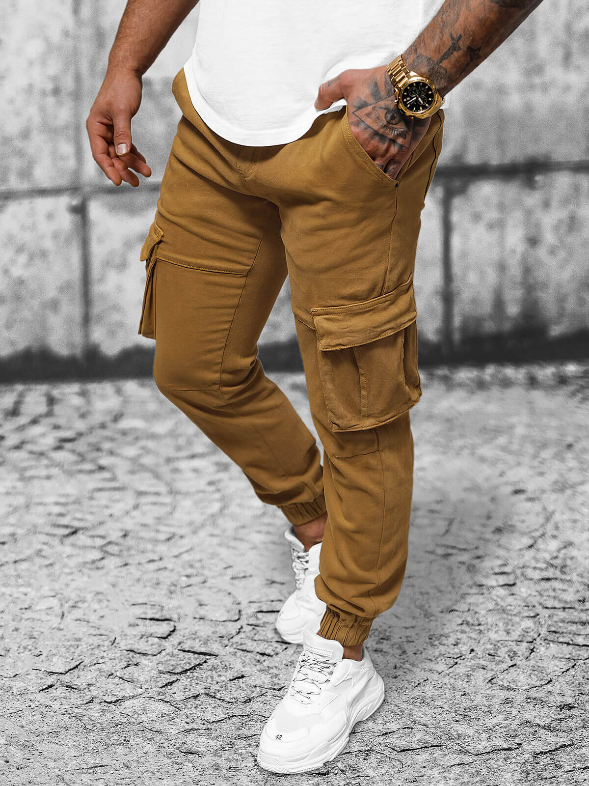Elegancja spotyka wygodę: Spodnie męskie joggery ciemno-camelowe OZONEE NB/MP0105KSZ