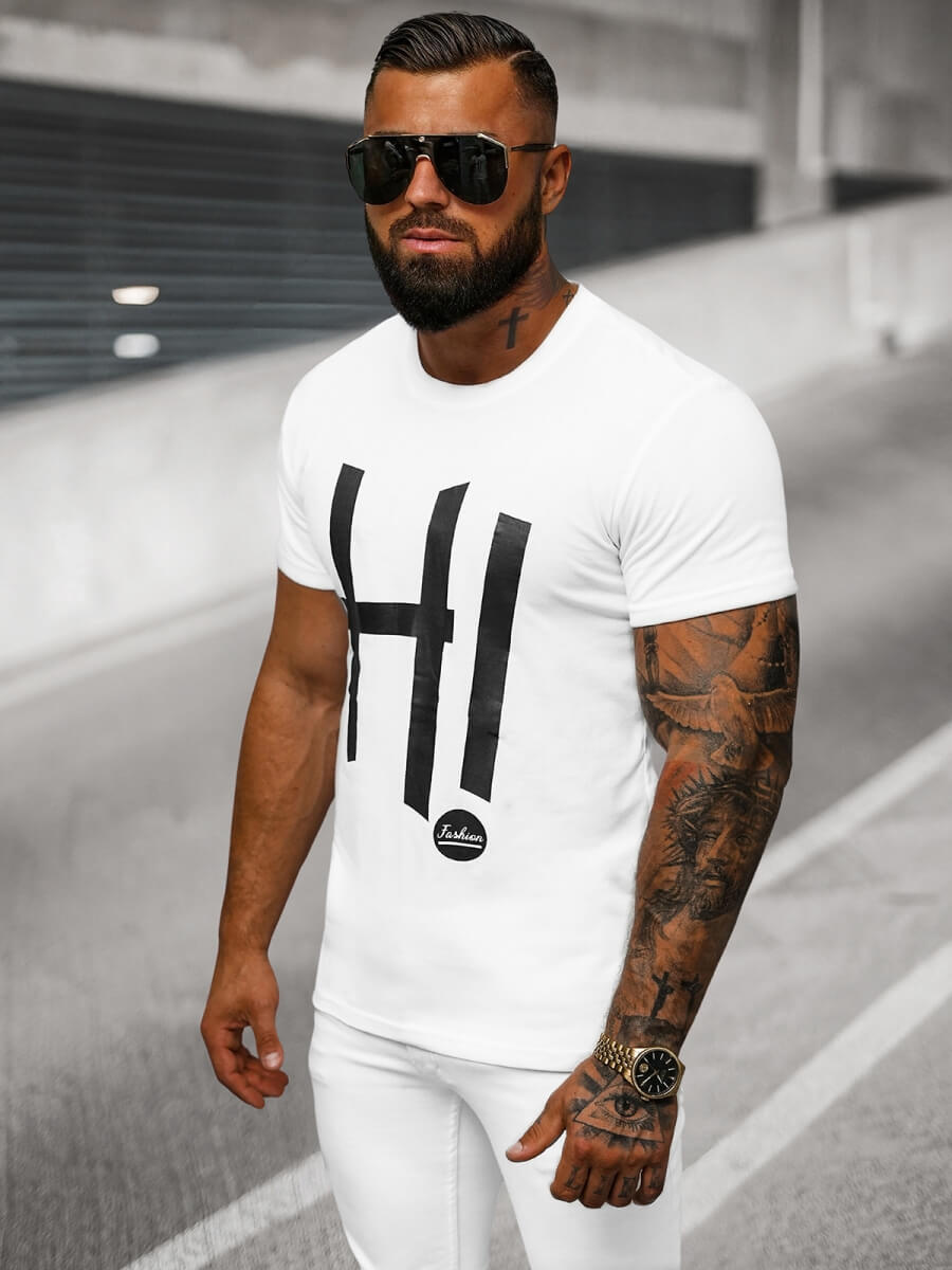 Stylowy i wygodny T-shirt męski biały OZONEE O/T1261/1