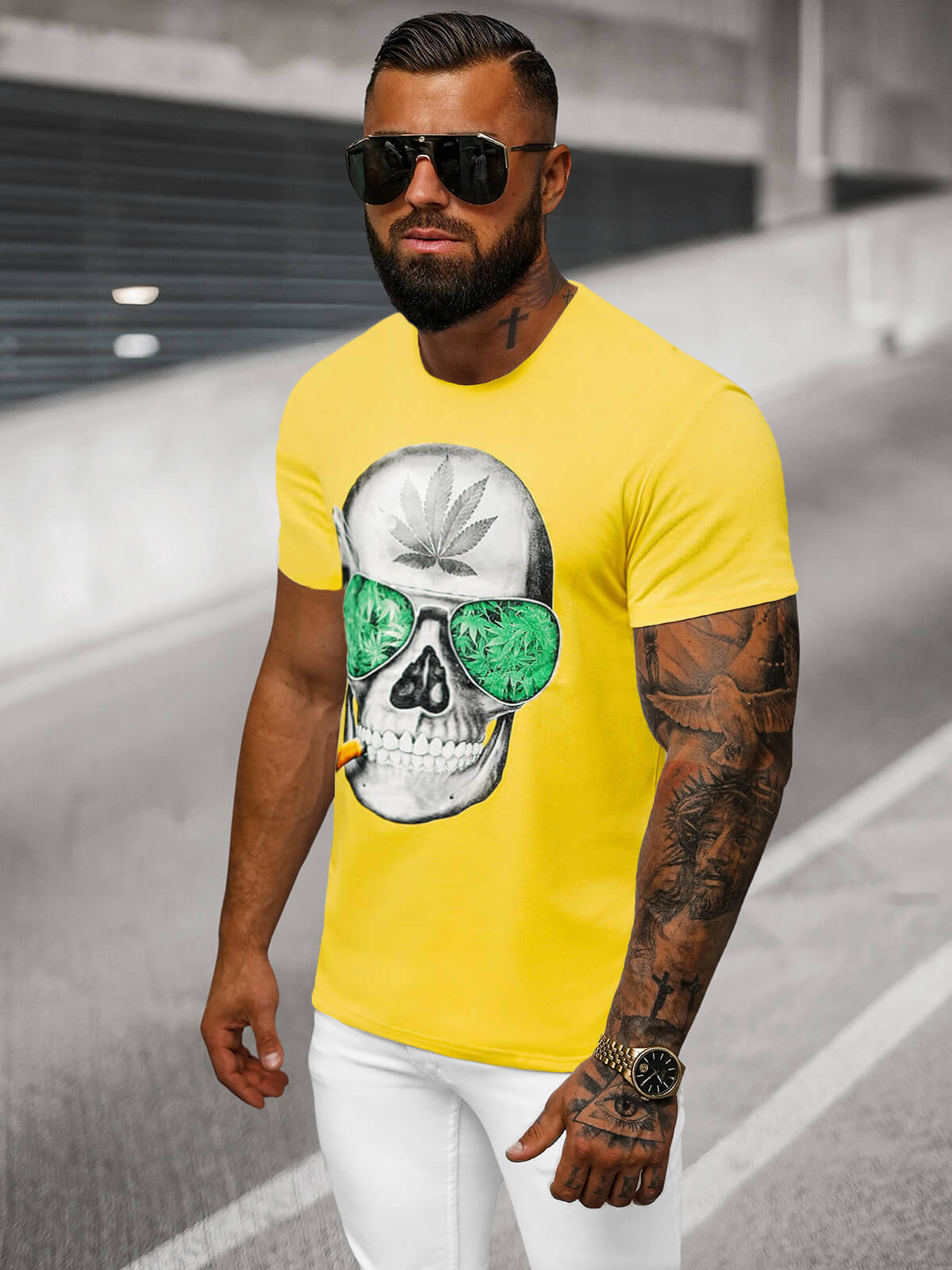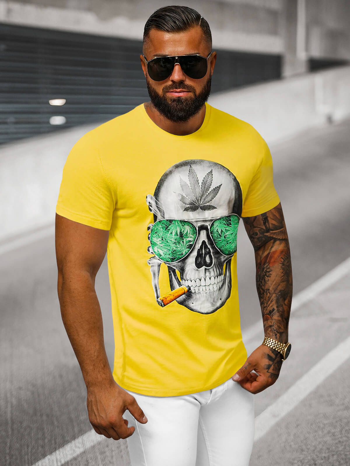 T-shirt męski z nadrukiem żółty OZONEE JS/Y70019Z - odważny wybór dla nowoczesnego mężczyzny
