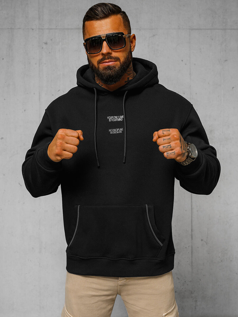 Stylowy i komfortowy element garderoby - Bluza z kapturem oversize męska czarna OZONEE O/SWE23013